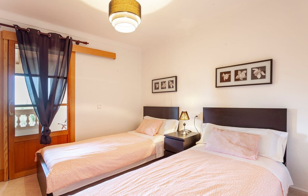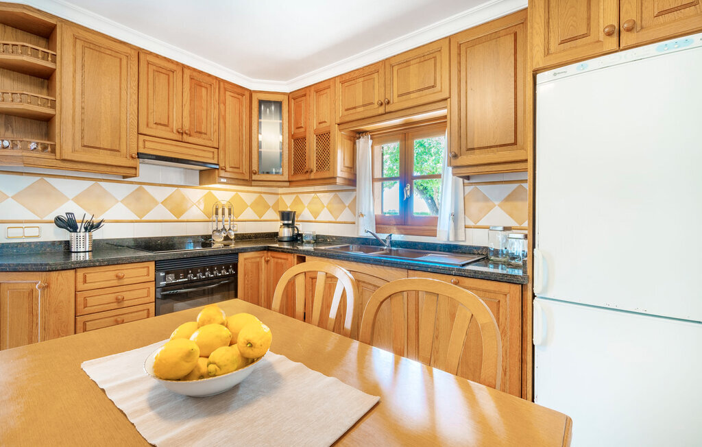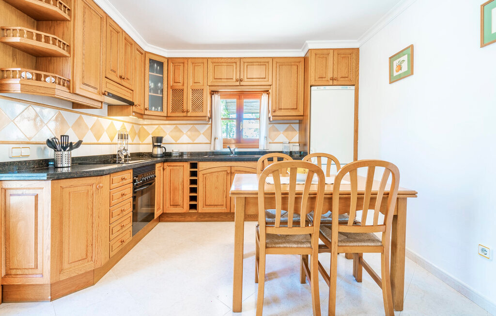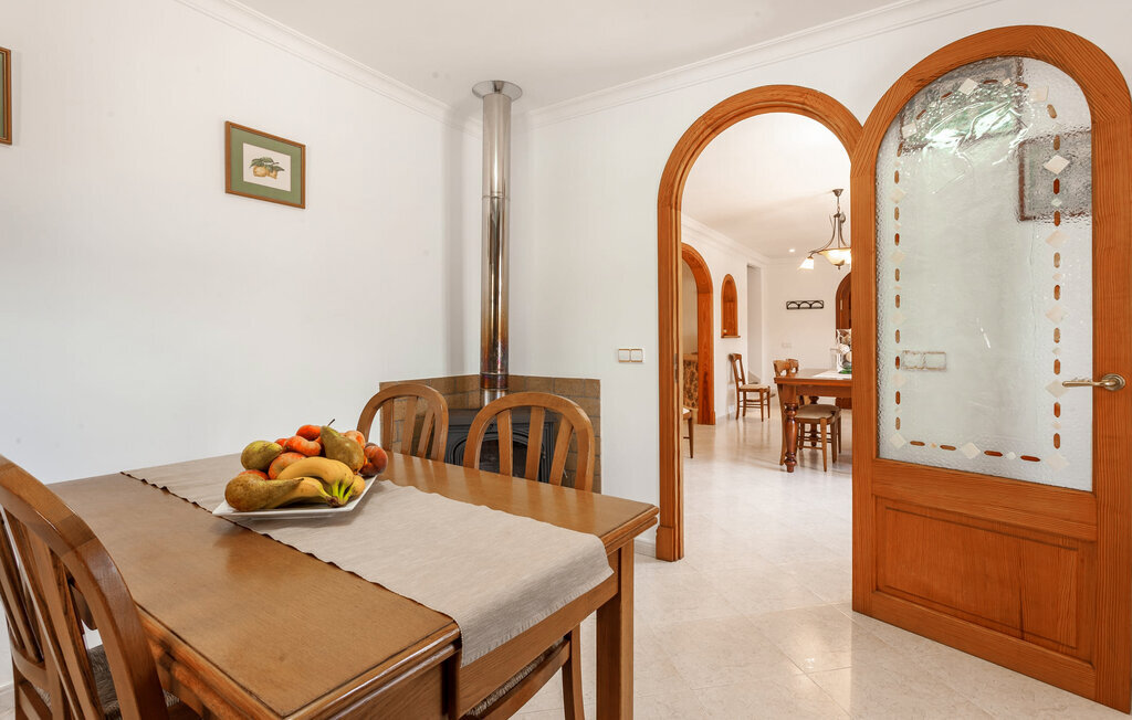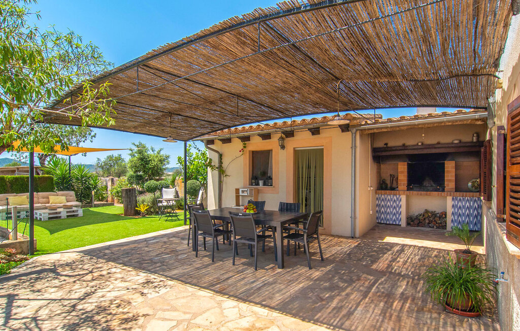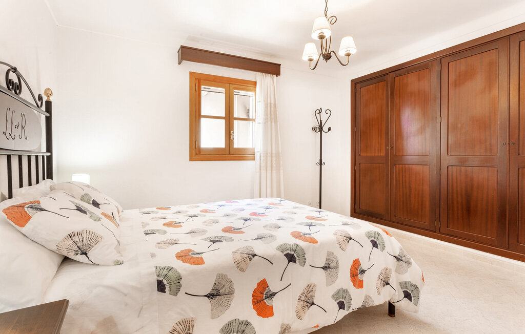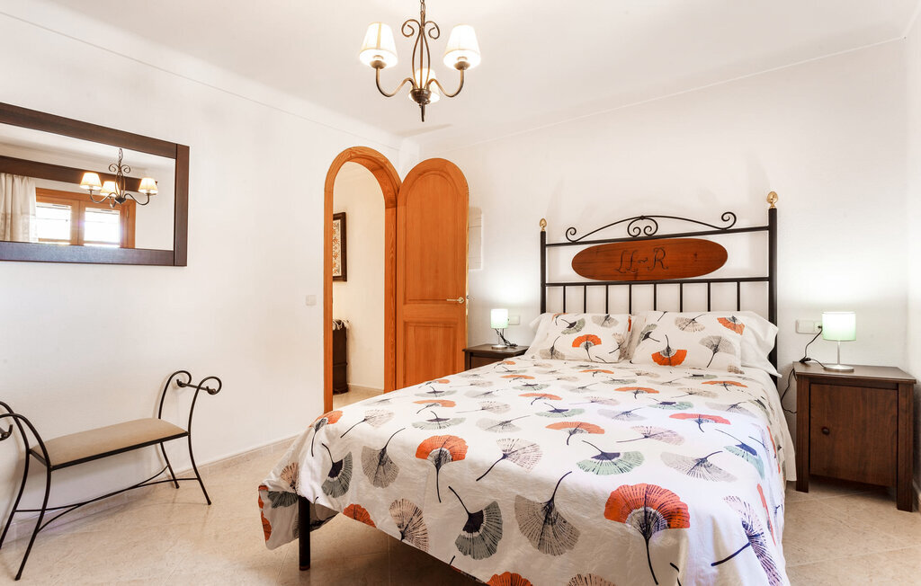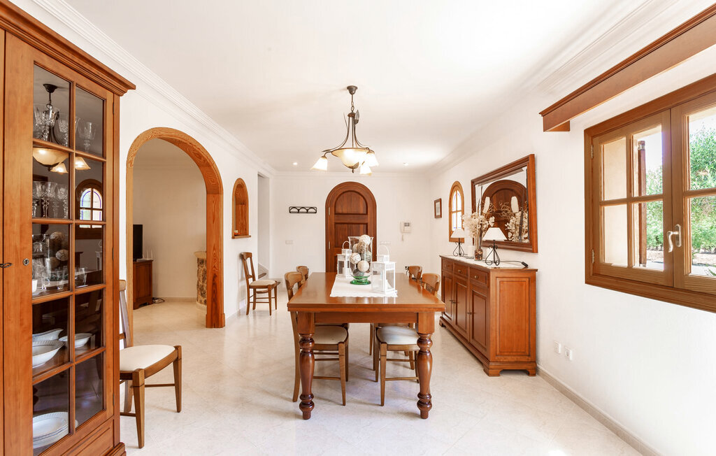 La villa Es Cipres, idéale pour les familles, vous séduira par sa jolie situation isolée sur un terrain de 9.000 m² et sa végétation luxuriante selon la saison. Une multitude de plantes, de vastes surfaces de gravier et de terrasses ainsi que des niches accueillantes pour se reposer confèrent à cette propriété un charme individuel. La sensation d'espace est ici impressionnante et directement perceptible. Grâce au toit de la maison, vous avez la possibilité de vous réjouir, selon vos préférences, au soleil ou à l'ombre aérée, d'une multitude d'endroits merveilleux pour vous détendre. Des chaises longues confortables vous invitent à vous détendre et à vous reposer, tout comme les coins salon de bon goût où vous pouvez prendre vos repas ensemble. Vous pourrez y prendre votre petit déjeuner en profitant de la vue dégagée sur le ciel bleu profond du matin ou terminer agréablement une autre journée de vacances bien remplie dans l'atmosphère du soir. La piscine, perpendiculaire à la villa, est sécurisée par une clôture pour les enfants. La piscine est carrelée avec de jolies mosaïques et sa profondeur varie entre 1 m et 1,90 m. Six chaises longues confortables sont à la disposition de tous les amateurs de soleil et deux parasols protègent des rayons UV éblouissants. Un autre magnifique espace de détente extérieur se trouve à l'étage supérieur, où un balcon spacieux offre une vue idyllique. Différents jeux pour enfants rendent le séjour à l'extérieur encore plus attrayant pour nos petits hôtes.