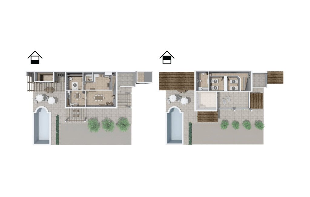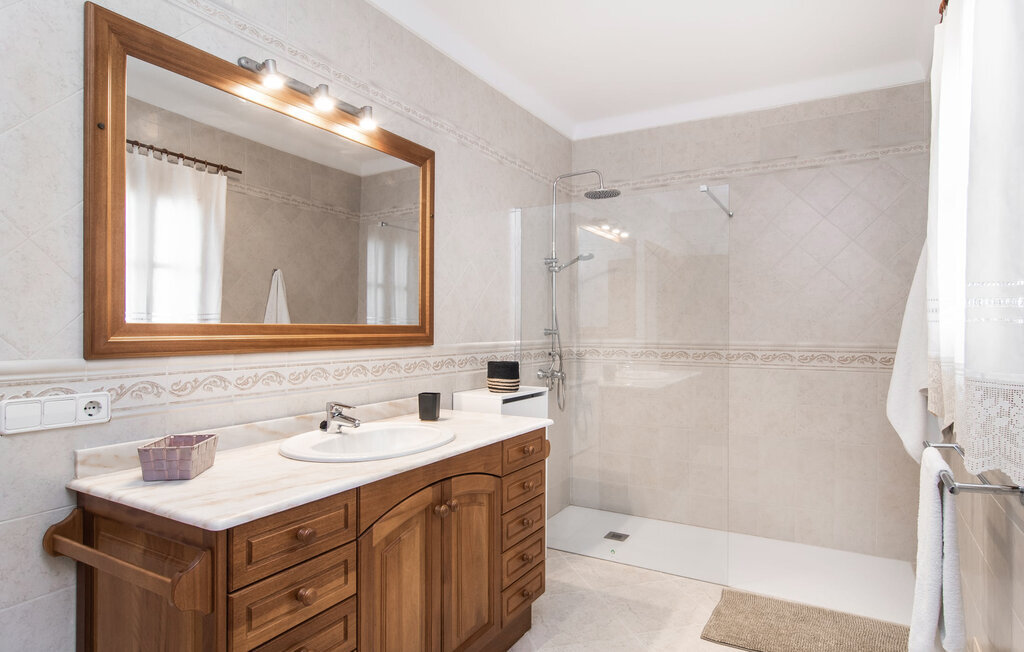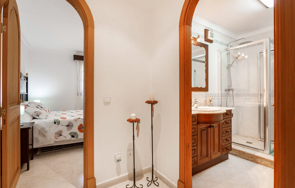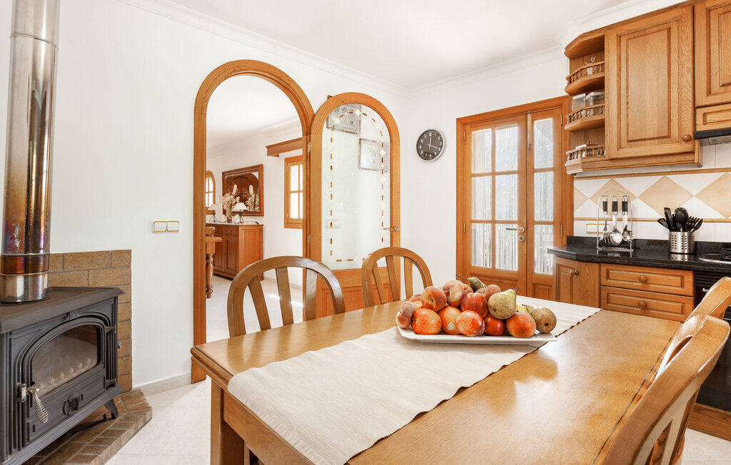 L'intérieur de la villa est aménagé avec goût. Des murs, des plafonds et des sols clairs sont combinés avec beaucoup de bois et un bel éclairage. Des accessoires de bon goût ont été utilisés dans les bonnes proportions, de sorte que la sensation d'espace naturel conserve ses lignes claires et son élégance. Différentes arches assurent une harmonie essentielle à la propriété. Le point central de la maison est le salon/salle à manger combiné ouvert, accessible par un large couloir et contenant aussi bien un immense coin repas qu'un canapé d'angle au design lumineux avec télévision par satellite. Les soirs plus frais, vous pourrez vous y détendre à la lueur de la cheminée et de la chaleur d'un feu. Un autre coin repas se trouve dans la cuisine spacieuse et élégante, qui est entièrement équipée et offre aux hôtes un réfrigérateur, un four, une cuisinière à gaz, un lave-vaisselle, une machine à café Melitta, une bouilloire et suffisamment d'espace de rangement. Une cheminée a également été installée ici, ce qui apporte une touche de convivialité supplémentaire. Des chambres à coucher joliment aménagées avec une touche individuelle invitent à un sommeil réparateur. Des couleurs agréables associées à des meubles élégants créent une atmosphère chaleureuse. Les salles de bains spacieuses sont conçues avec goût et équipées de robinetteries de qualité. Un fer à repasser et un sèche-cheveux sont disponibles dans la maison, vous n'avez donc pas besoin de les apporter.