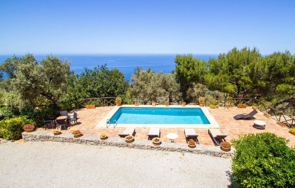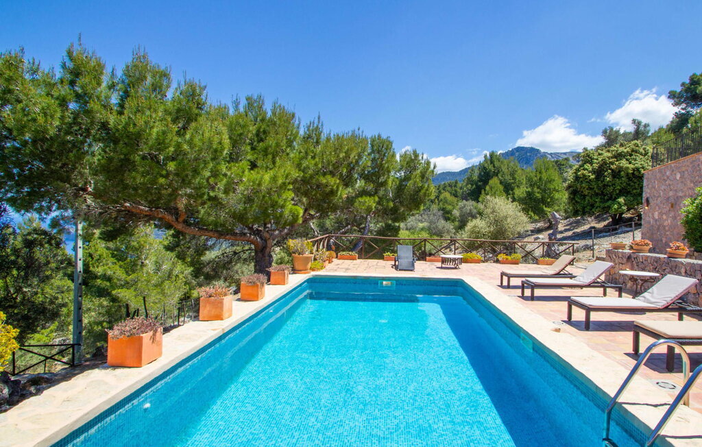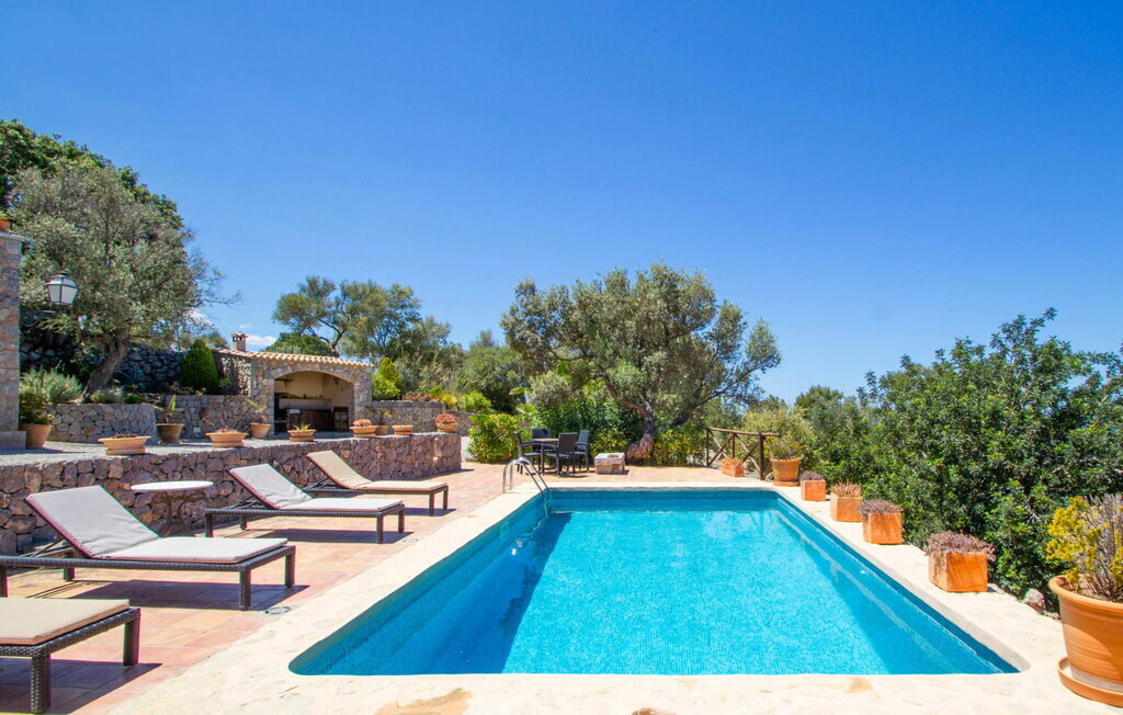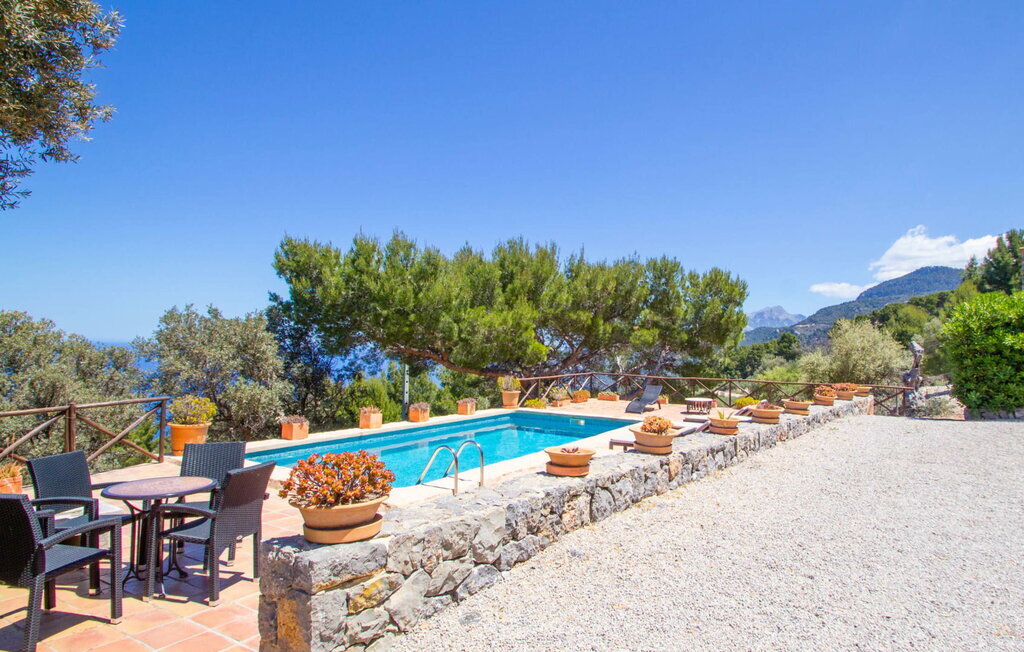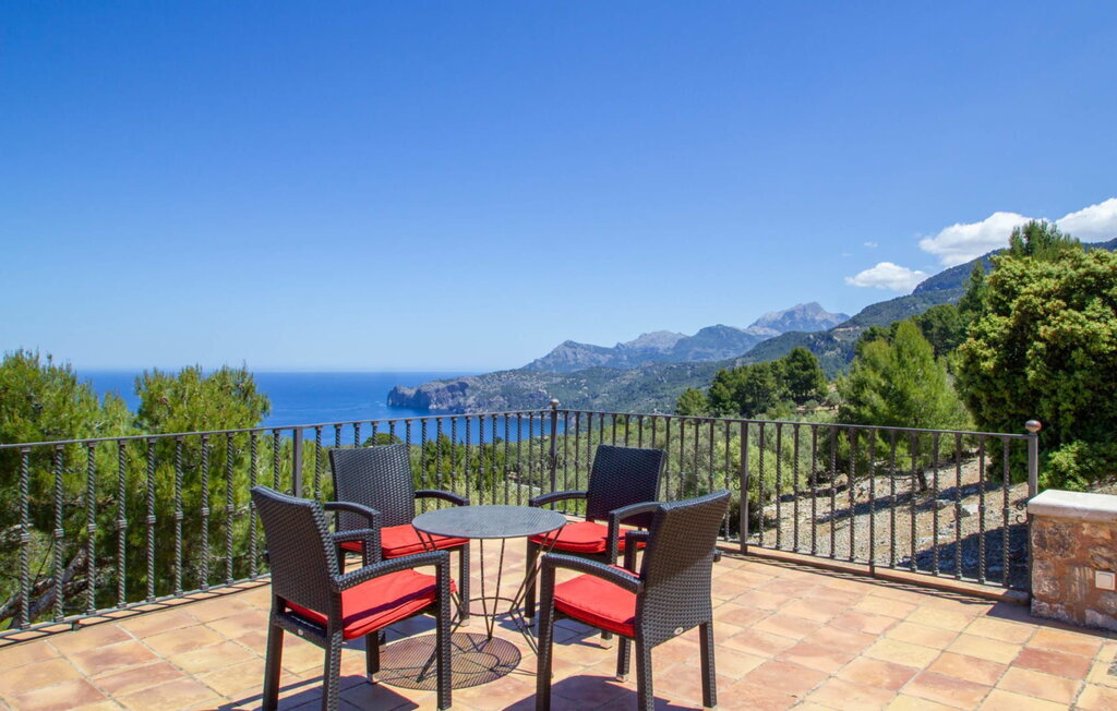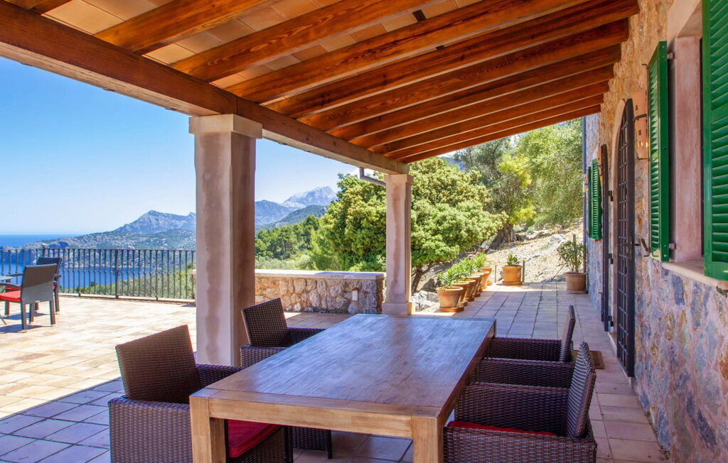 Cette charmante villa "Valero", de style rustique traditionnel majorquin, est située près de Valldemossa, sur l'époustouflante côte ouest de l'île, et offre une vue imprenable sur la mer.