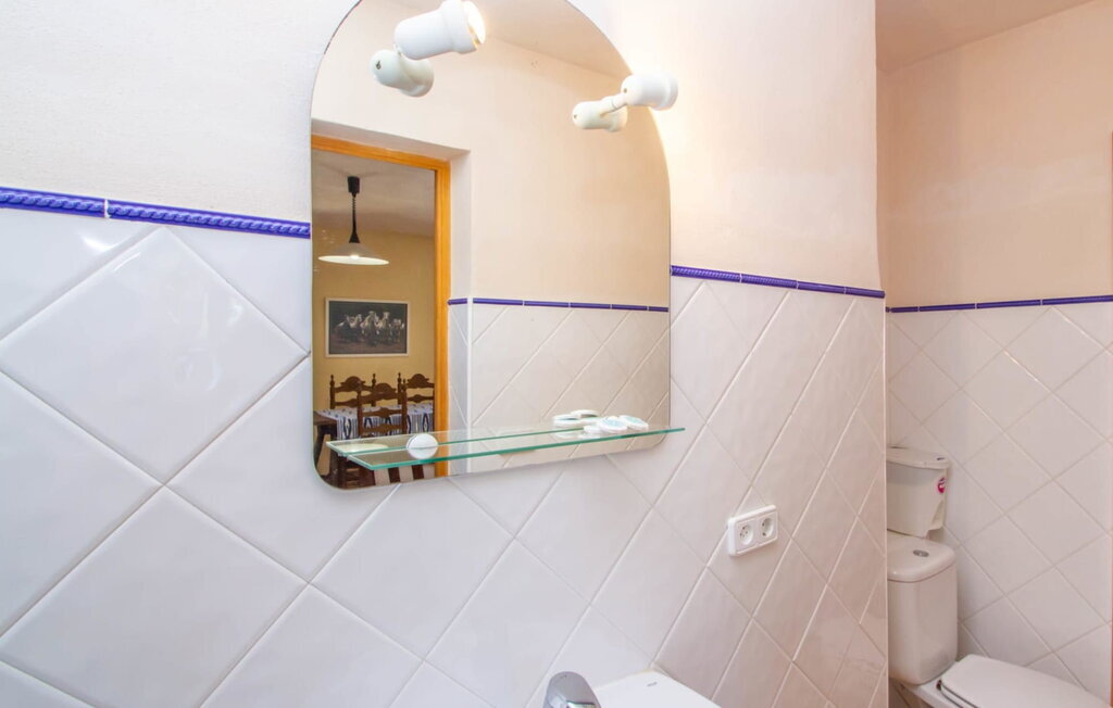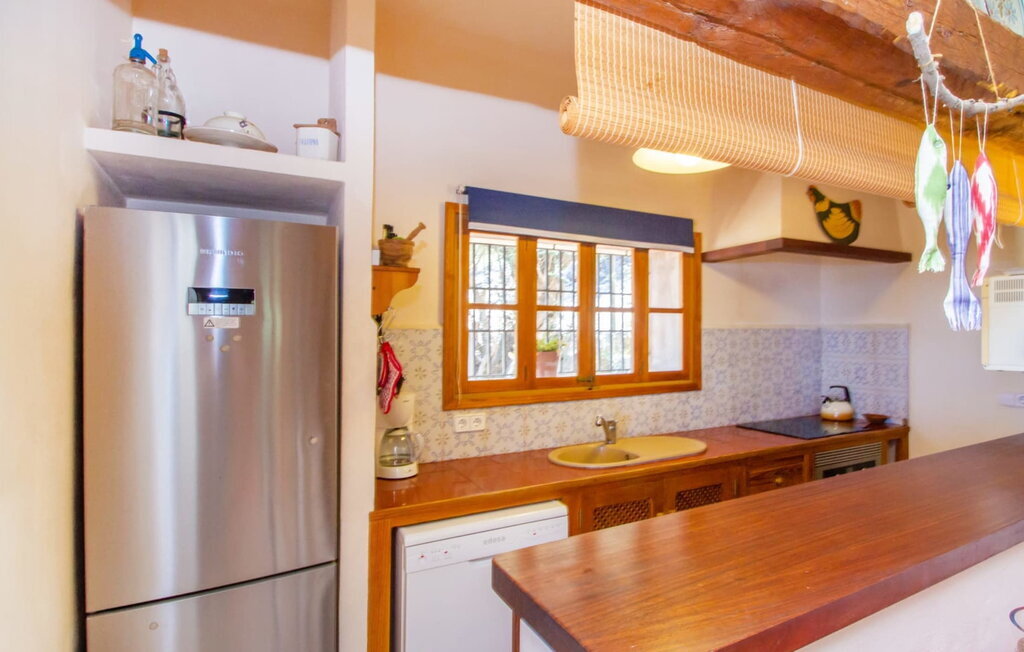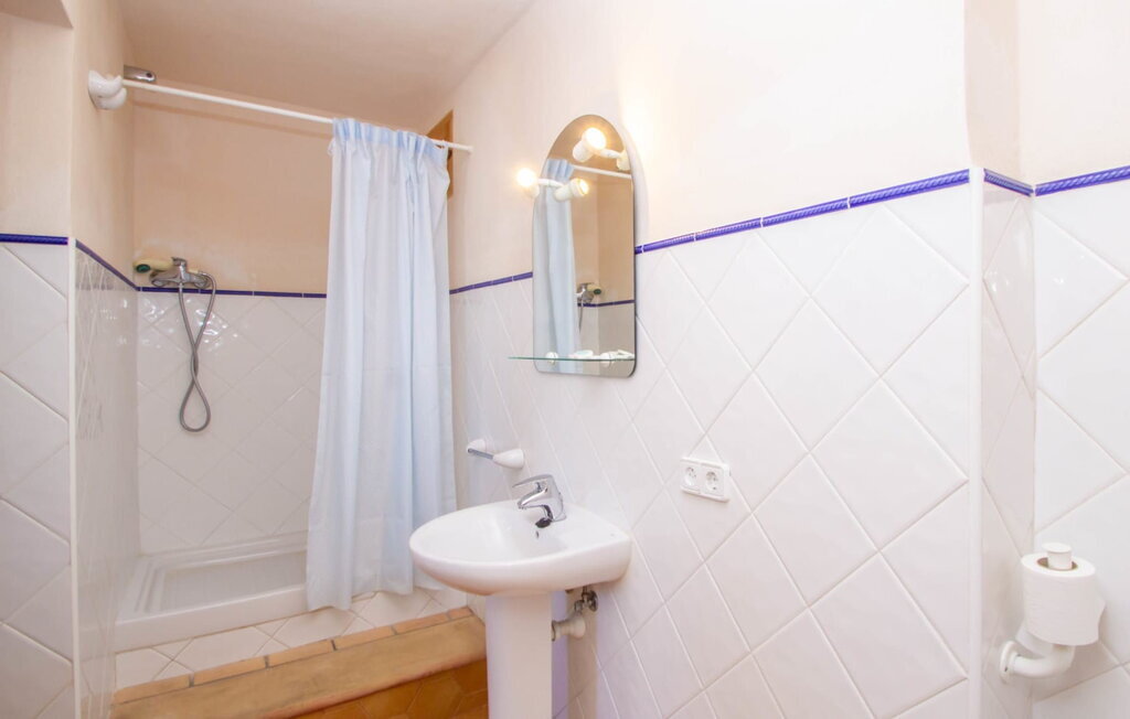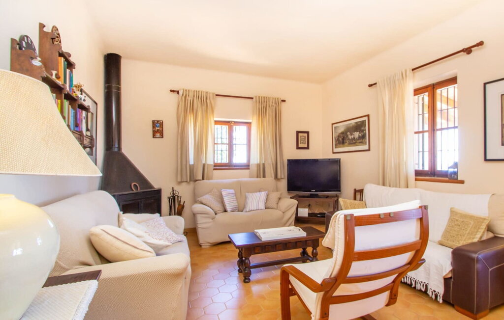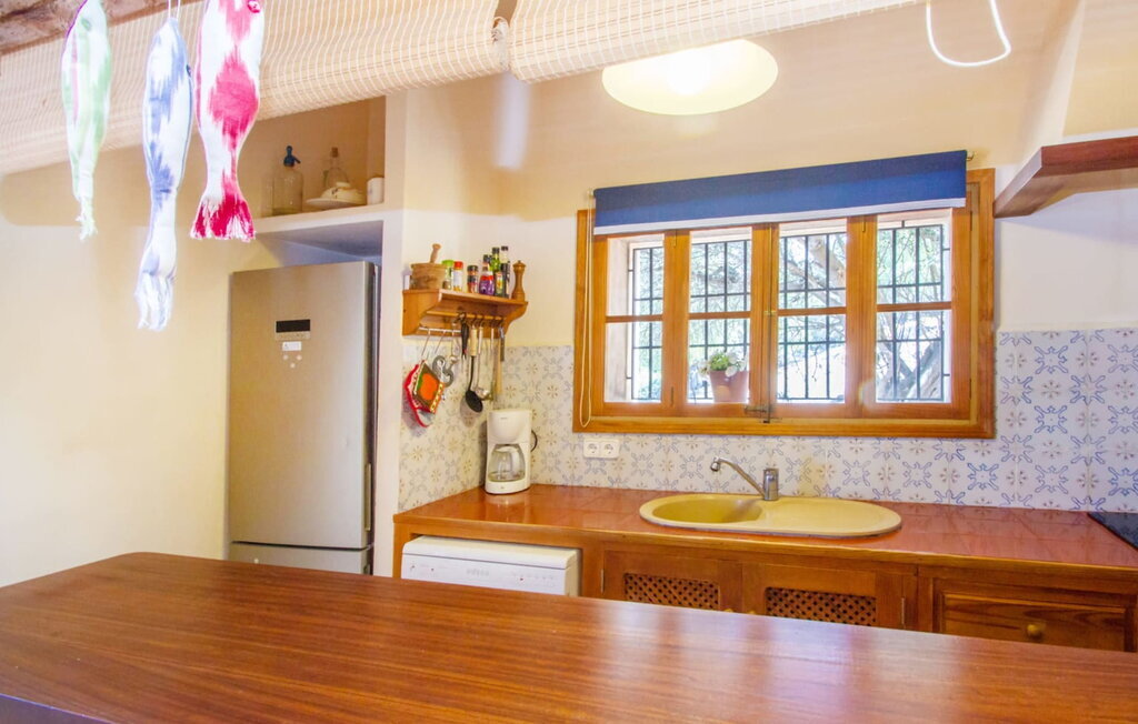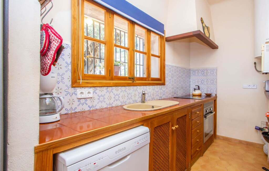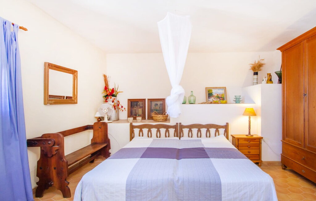 La maison principale s'étend sur deux étages et dispose de deux chambres doubles confortables, d'une salle de bains avec douche et d'un WC supplémentaire. La cuisine ouverte est entièrement équipée et le salon/salle à manger est l'endroit idéal pour se détendre. Une annexe avec entrée séparée offre un espace de vie supplémentaire, une chambre double spacieuse avec salle de bain privée et est donc idéale pour les groupes à la recherche d'intimité. La climatisation assure le confort pendant les chaudes nuits d'été, tandis que le mobilier reflète le style authentique de Majorque, parfait pour s'immerger dans la culture locale.