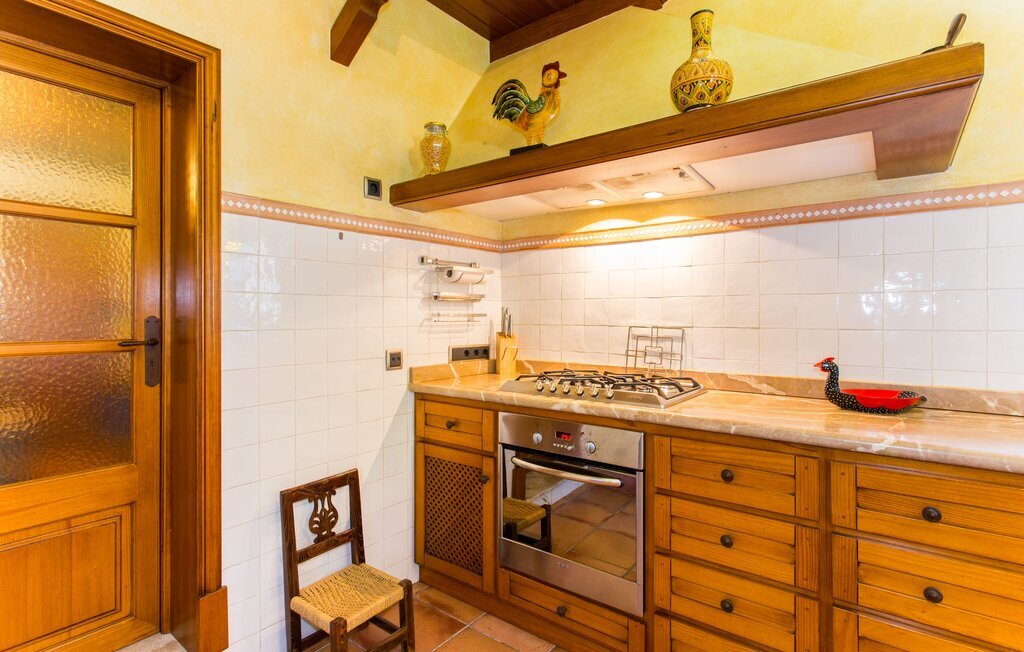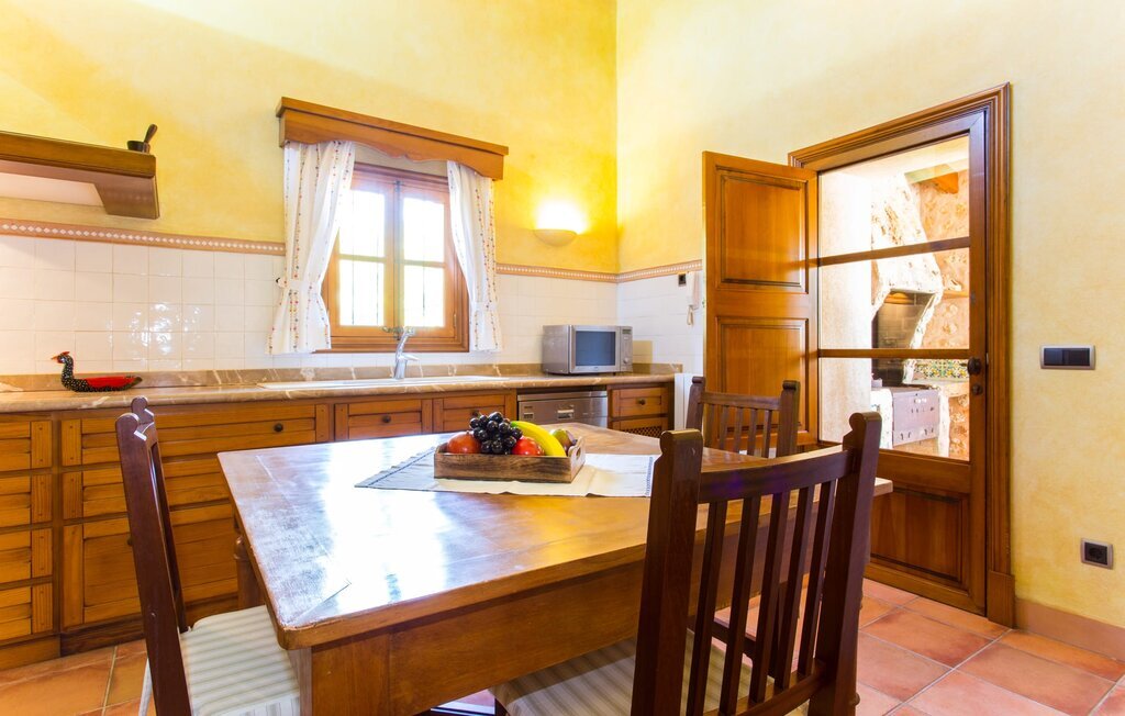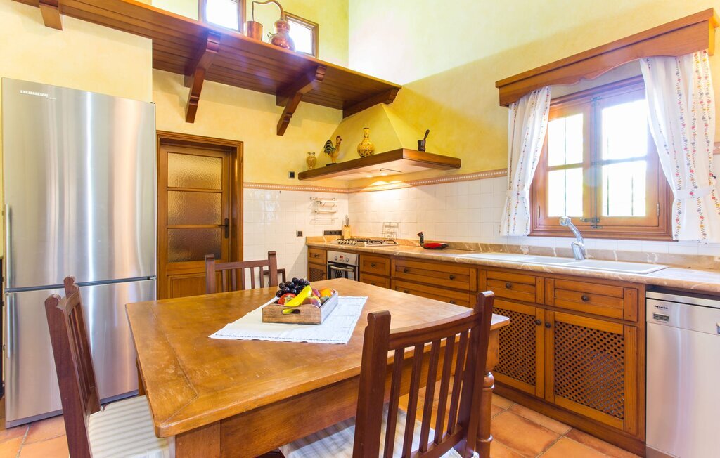 Vous y trouverez une grande cheminée avec une table à manger, un téléviseur à écran plat, un canapé confortable et un autre meuble exquis, mis en valeur par une lumière chaleureuse. Avec un débarras attenant, la cuisine offre suffisamment de place pour ranger tous les achats et les cadeaux à rapporter à la maison. Pour que vous n'ayez pas à renoncer aux commodités d'un équipement haut de gamme même en vacances, un four à micro-ondes et une machine à café automatique sont disponibles. À la table à manger de la cuisine, vous pouvez prendre vos céréales le matin si vous êtes impatient de commencer la journée, qui promet d'être fantastique dans une telle villa.