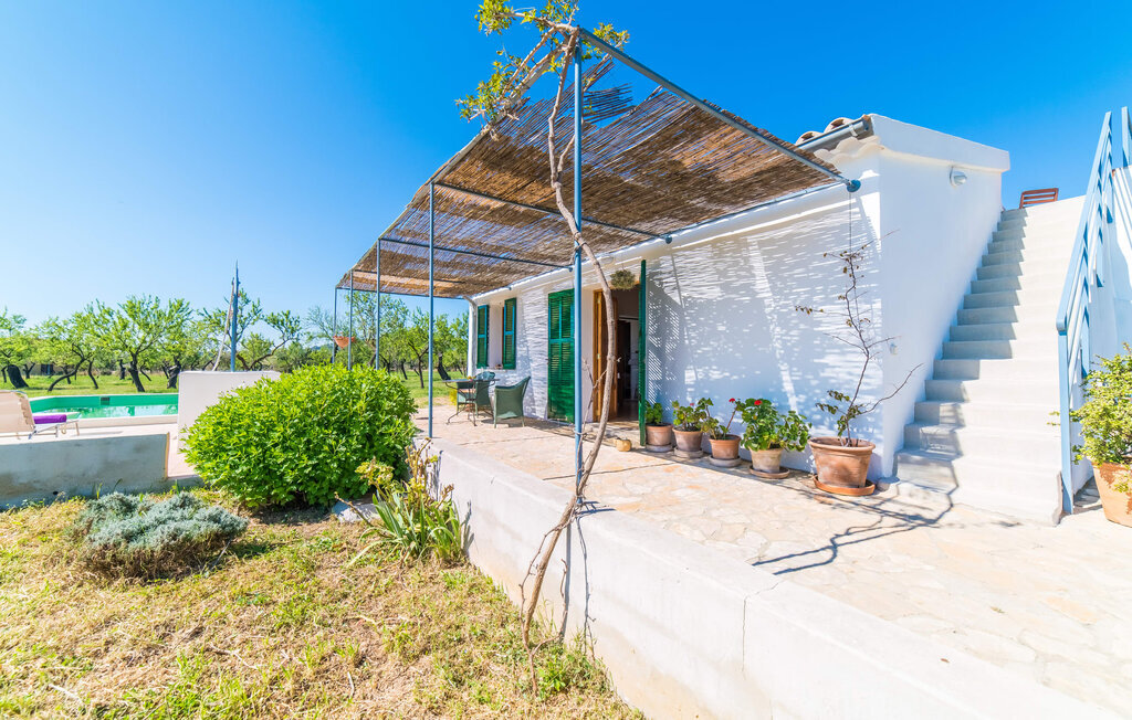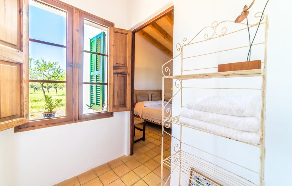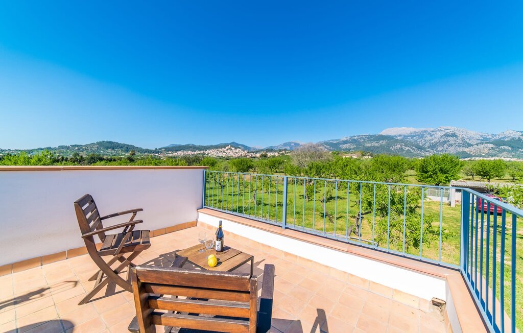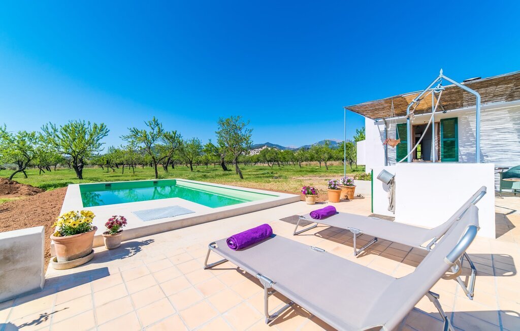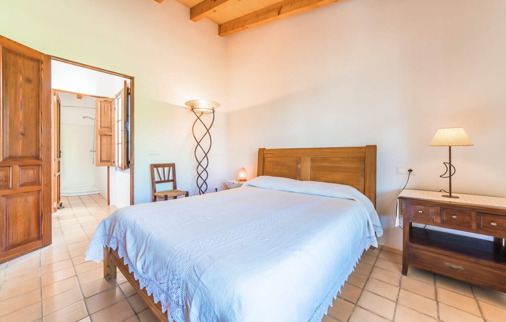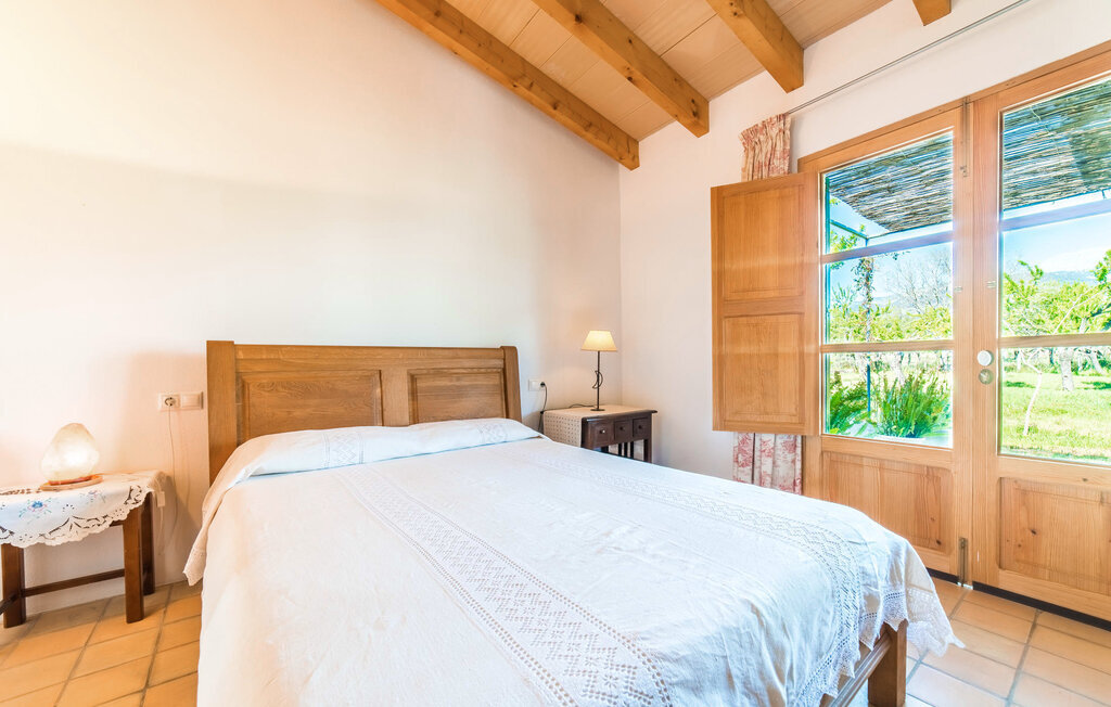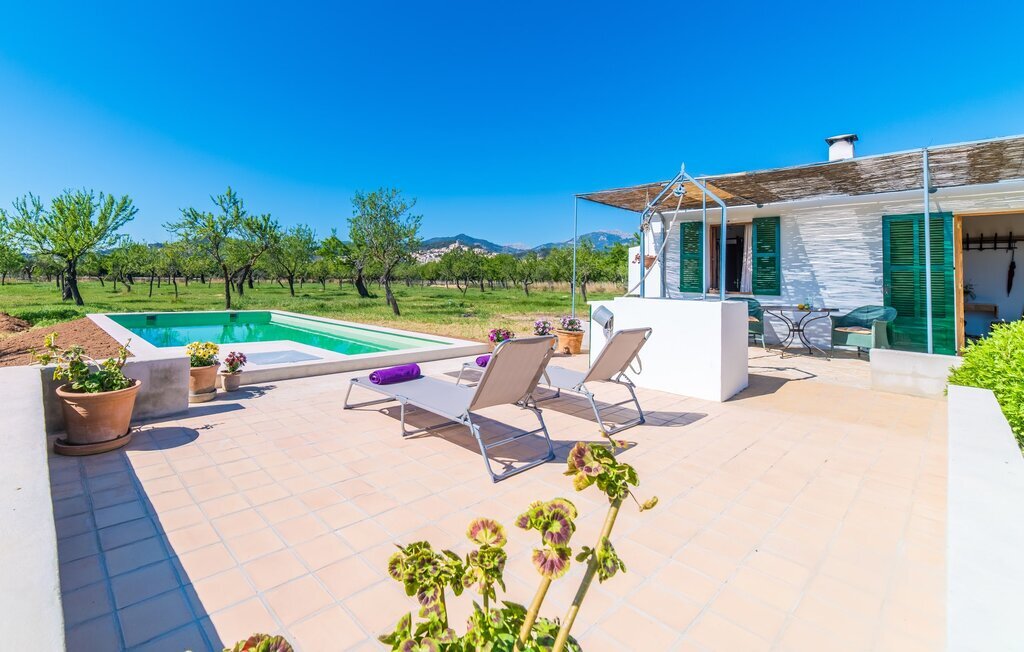 Entourée de charme méditerranéen et située dans la campagne du nord de l'île : C'est la Villa Donoso. Cette maison de vacances aux volets verts offre une atmosphère merveilleusement conviviale et vous accueille avec un extérieur romantique et rustique. La propriété comprend une piscine dans laquelle vous pourrez prendre un bain rafraîchissant lors des chaudes journées d'été et qui est en outre aménagée de manière à ce que vous ayez une vue pittoresque sur les montagnes de Tramuntana et la ville la plus proche, Selva, tout en vous rafraîchissant. Juste à côté de la piscine de 7 mètres de long se trouve une terrasse ensoleillée avec des chaises longues. Ainsi, en prenant un bain de soleil et en se relaxant après les plaisirs de la baignade, on se sent vraiment en vacances. Le toit de chaume aéré au-dessus de la terrasse en pierre, juste à côté de la maison, offre une protection agréable les jours particulièrement ensoleillés. De l'autre côté de la maison, vous trouverez un petit espace agréable pour vous asseoir et vous régaler avec une vue parfaite sur la verdure. Vous pourrez ensuite profiter du coucher de soleil sur la terrasse du toit, accessible de l'extérieur, et terminer ainsi votre belle journée de vacances.
