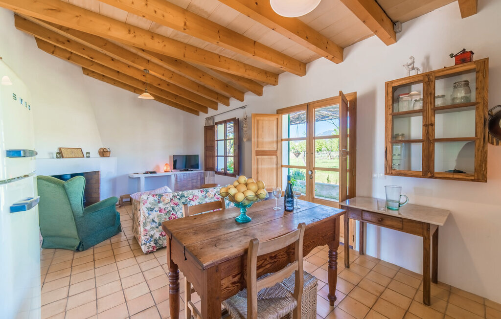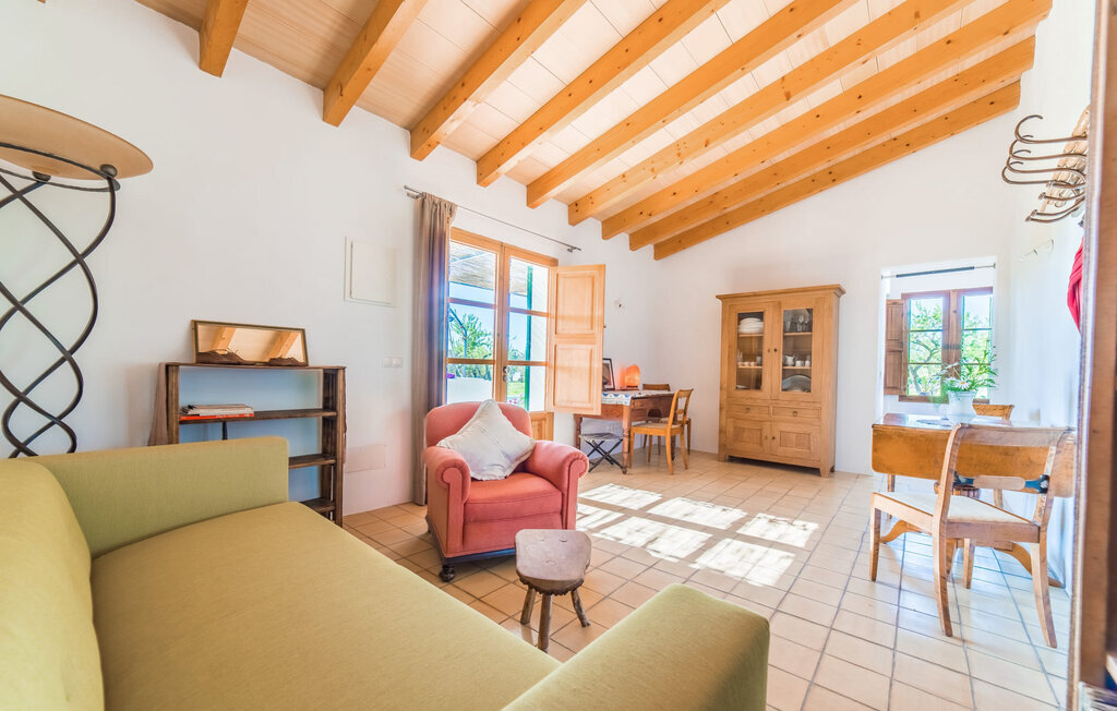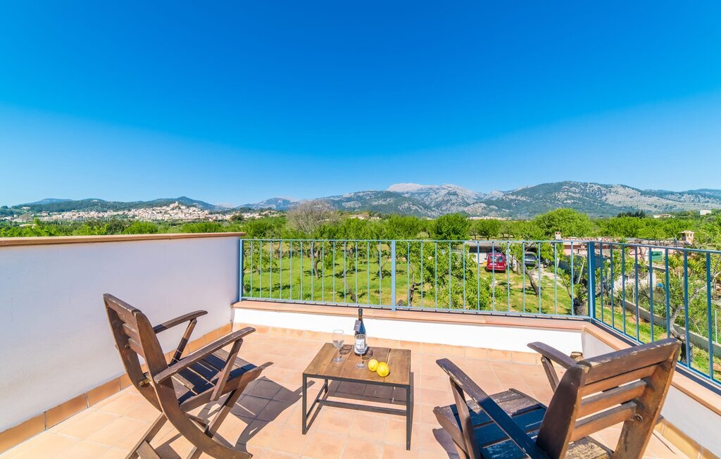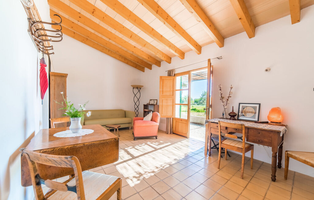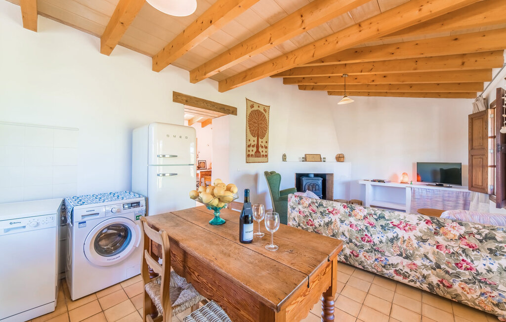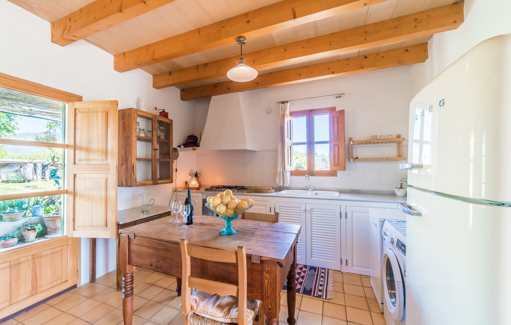 Entourée de charme méditerranéen et située dans la campagne du nord de l'île : C'est la Villa Donoso. Cette maison de vacances aux volets verts offre une atmosphère merveilleusement conviviale et vous accueille avec un extérieur romantique et rustique. La propriété comprend une piscine dans laquelle vous pourrez prendre un bain rafraîchissant lors des chaudes journées d'été et qui est en outre aménagée de manière à ce que vous ayez une vue pittoresque sur les montagnes de Tramuntana et la ville la plus proche, Selva, tout en vous rafraîchissant. Juste à côté de la piscine de 7 mètres de long se trouve une terrasse ensoleillée avec des chaises longues. Ainsi, en prenant un bain de soleil et en se relaxant après les plaisirs de la baignade, on se sent vraiment en vacances. Le toit de chaume aéré au-dessus de la terrasse en pierre, juste à côté de la maison, offre une protection agréable les jours particulièrement ensoleillés. De l'autre côté de la maison, vous trouverez un petit espace agréable pour vous asseoir et vous régaler avec une vue parfaite sur la verdure. Vous pourrez ensuite profiter du coucher de soleil sur la terrasse du toit, accessible de l'extérieur, et terminer ainsi votre belle journée de vacances.