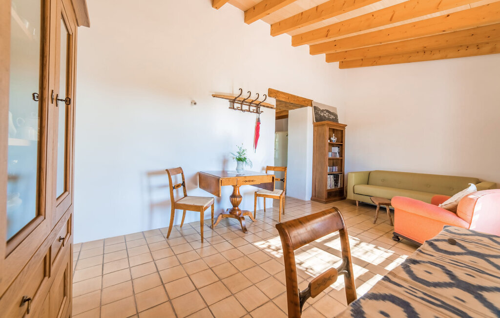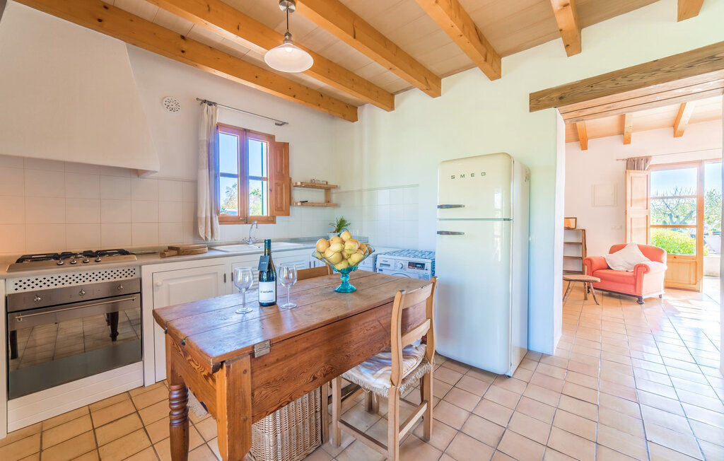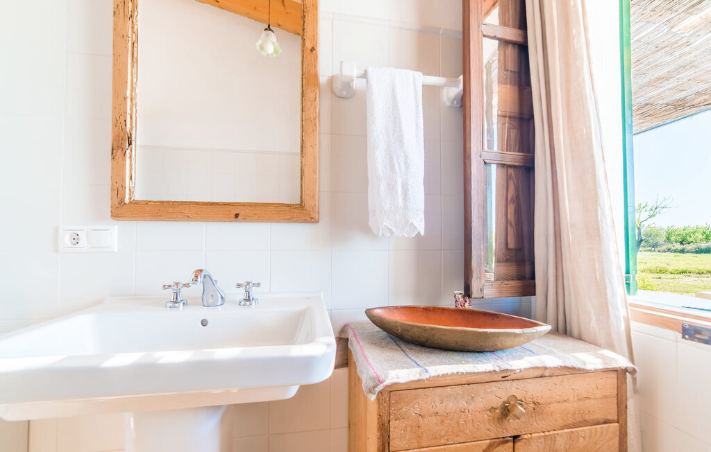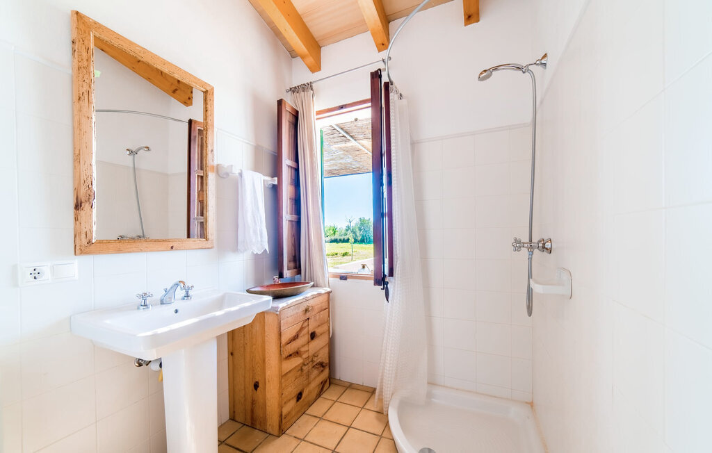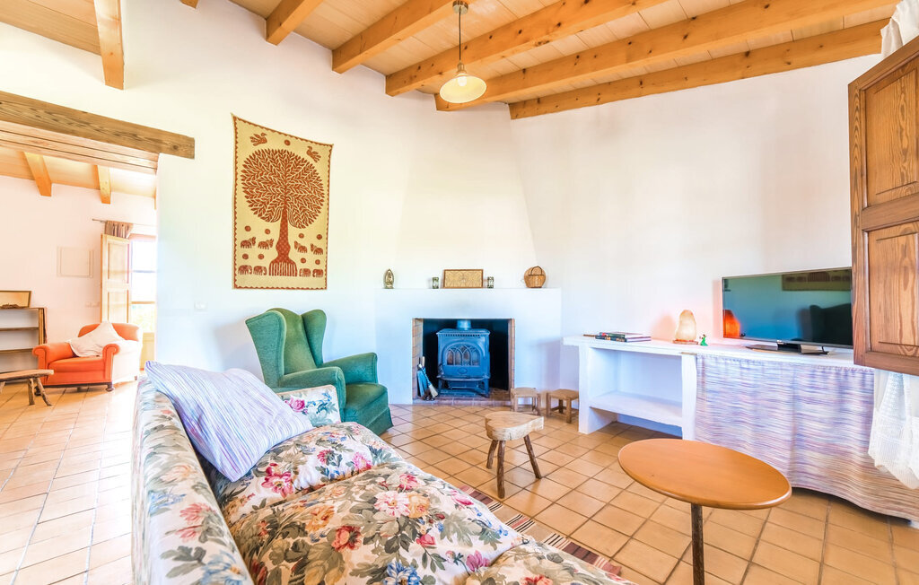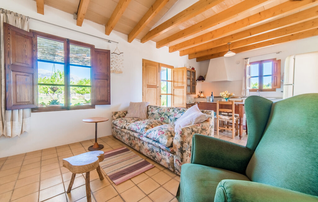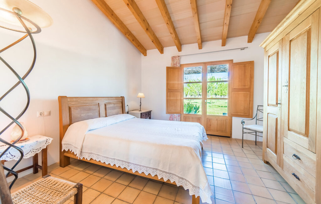Entourée de charme méditerranéen et située dans la campagne du nord de l'île : C'est la Villa Donoso. Cette maison de vacances aux volets verts offre une atmosphère merveilleusement conviviale et vous accueille avec un extérieur romantique et rustique. La propriété comprend une piscine dans laquelle vous pourrez prendre un bain rafraîchissant lors des chaudes journées d'été et qui est en outre aménagée de manière à ce que vous ayez une vue pittoresque sur les montagnes de Tramuntana et la ville la plus proche, Selva, tout en vous rafraîchissant. Juste à côté de la piscine de 7 mètres de long se trouve une terrasse ensoleillée avec des chaises longues. Ainsi, en prenant un bain de soleil et en se relaxant après les plaisirs de la baignade, on se sent vraiment en vacances. Le toit de chaume aéré au-dessus de la terrasse en pierre, juste à côté de la maison, offre une protection agréable les jours particulièrement ensoleillés. De l'autre côté de la maison, vous trouverez un petit espace agréable pour vous asseoir et vous régaler avec une vue parfaite sur la verdure. Vous pourrez ensuite profiter du coucher de soleil sur la terrasse du toit, accessible de l'extérieur, et terminer ainsi votre belle journée de vacances.