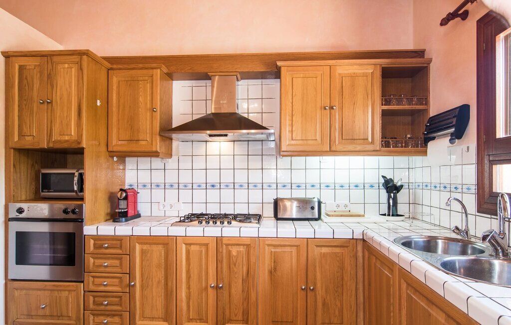 Cette confortable maison de vacances d'un étage aux tons chauds de terre cuite et de blanc naturel, rehaussés par des éléments en bois huilé, possède un charme rustique. Le salon accueillant dispose d'une cheminée, d'un ensemble de canapés et d'un coin repas, tandis que la cuisine pratique, avec ses plans de travail carrelés en blanc, répond à tous vos besoins culinaires. La villa dispose de deux chambres doubles spacieuses, chacune avec de grandes fenêtres qui inondent les pièces de lumière. Deux somptueuses salles de bains offrent tout ce dont vous avez besoin pour assurer votre confort tout au long de votre séjour.