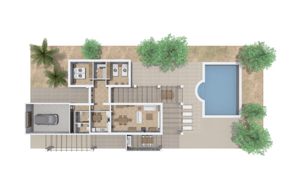 Entourée d'un vaste jardin de pins et d'oliviers, la villa dispose d'une piscine à couper le souffle, complétée par une spacieuse terrasse ensoleillée. Une douche extérieure se trouve à proximité. La fabuleuse terrasse entièrement couverte dispose d'un élégant coin salon en bois avec une table à manger spacieuse et offre une vue magnifique sur le jardin de la propriété. Le barbecue maçonné sert de toile de fond à de magnifiques réunions en plein air.