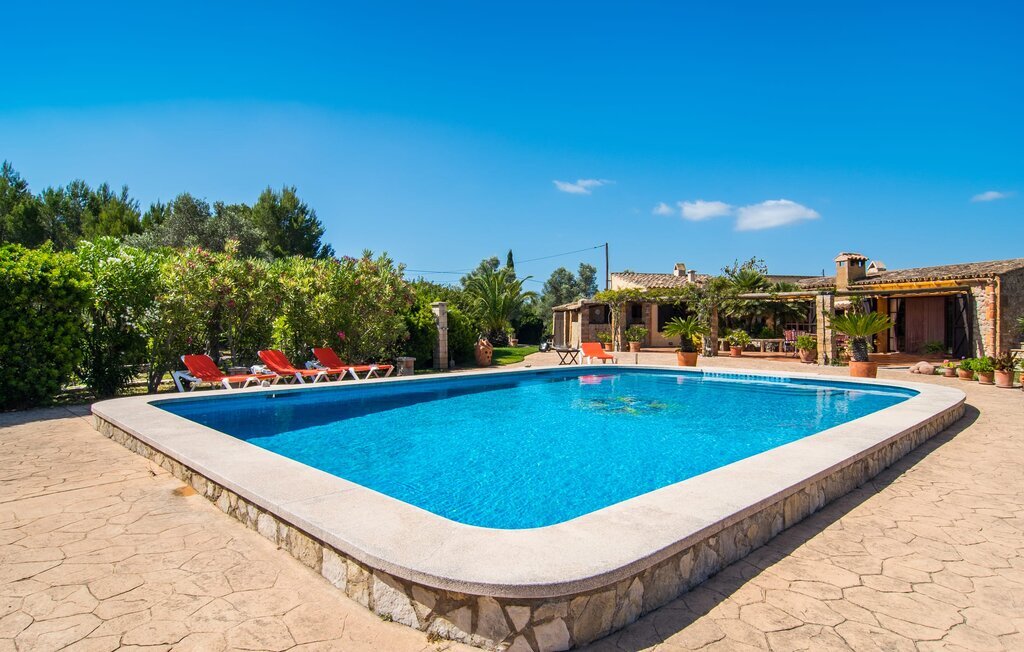 En passant devant des palmiers à grandes plumes et des poteries à l'aspect antique, une large allée mène à la magnifique villa Son Catiu Solivent, sur la côte est de Majorque. Dès le premier coup d'œil, vous serez séduit par le jardin luxuriant et la maison en pierre typique de Majorque. L'espace extérieur accueillant brille tout simplement d'un vert intense et répond à tous les souhaits. Les terrasses couvertes devant et derrière la maison sont particulièrement accueillantes et offrent une vue imprenable sur le paysage vallonné de l'est de l'île. Préparez de bons petits plats dans la cuisine extérieure bien équipée avec barbecue et savourez les délices culinaires de la cuisine espagnole. Dans la piscine de 11 x 7 m, vous pouvez faire quelques brasses dès le matin et commencer ainsi parfaitement la journée ou vous offrir une douche rafraîchissante dans la douche extérieure après un long bain de soleil. Les meubles d'extérieur confortables et les chaises longues de grande qualité sont répartis avec soin sur la propriété et invitent à la détente et à la relaxation. Un petit escalier en pierre descend vers un ancien étang. Ici, vous pouvez vous reposer et vous détendre un moment. À l'intérieur aussi, la villa convainc par son design original et de très grande qualité. Le salon/salle à manger ouvert, auquel se rattache une grande cuisine (également ouverte) entièrement équipée, rayonne tout simplement de charme et on ne peut se lasser des nombreux détails soignés de l'aménagement. Des poutres rustiques au plafond, des murs peints de couleurs vives et des éléments de décoration nostalgiques confèrent aux chambres une ambiance d'antan. Des heures agréables vous attendent dans le calme salon avec cheminée. Asseyez-vous dans les fauteuils confortables ou installez-vous dans les jolis coins salon et écoutez le doux vacillement du feu. Deux chambres doubles très confortablement aménagées avec des lits de 1,80 x 2,00 m et chacune sa propre salle de bain promettent un sommeil réparateur.