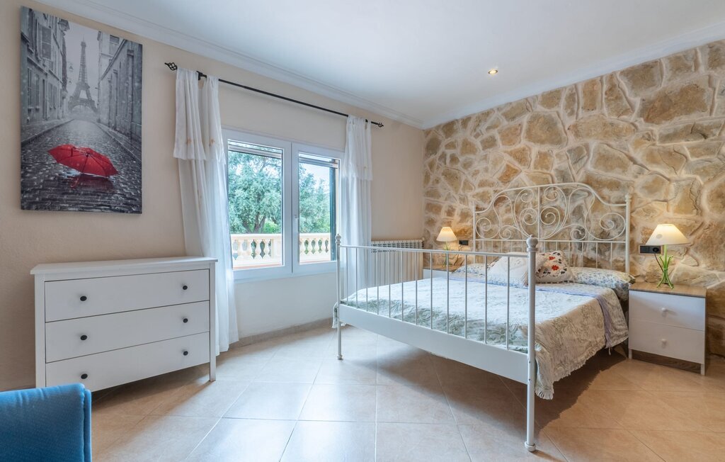 Un petit escalier de cinq marches ou une deuxième entrée de plain-pied permettent d'accéder à l'intérieur rustique de cette maison de vacances accueillante. La convivialité est au premier plan dans les pièces dont les couleurs s'inspirent de la nature. Le grand salon et la salle à manger constituent le cœur de cette ferme accueillante. Un autre coin repas vous attend dans la pièce séparée où se trouve la cuisine entièrement équipée de style campagnard. Les cinq chambres à coucher sont réparties sur deux étages et disposent chacune de lits doubles ou de deux lits simples. Cette maison de vacances accueillante à l'est de Majorque est une destination parfaite pour jusqu'à huit personnes. Elle convient donc particulièrement bien à deux ou trois familles voyageant ensemble. Les trois salles de bains avec douches peuvent être parfaitement réparties entre les familles. Profitez de vos vacances ensemble dans cette maison de vacances traditionnelle et rustique, adaptée au travail à domicile, sur l'île populaire à l'est de Majorque. La ferme Villa Bona Vista est située au milieu des douces collines entourant les villes médiévales de Capdepera et d'Artà. Ces deux villes, avec leurs marchés hebdomadaires animés, ne sont qu'à 5 10 minutes environ en voiture de location. Les magnifiques plages de sable de la côte est, comme Cala Torta ou Cala Mesquida, sont accessibles en un agréable court trajet en voiture.