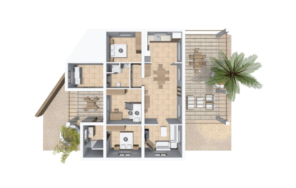 Noorea propose principalement des propriétés indépendantes : maisons, villas et chalets.