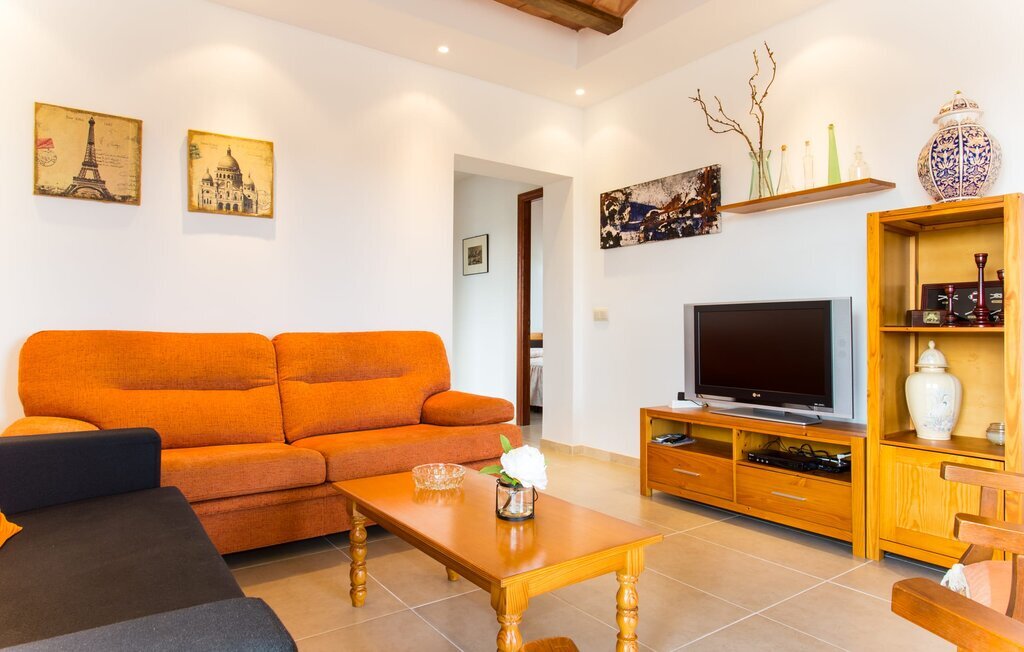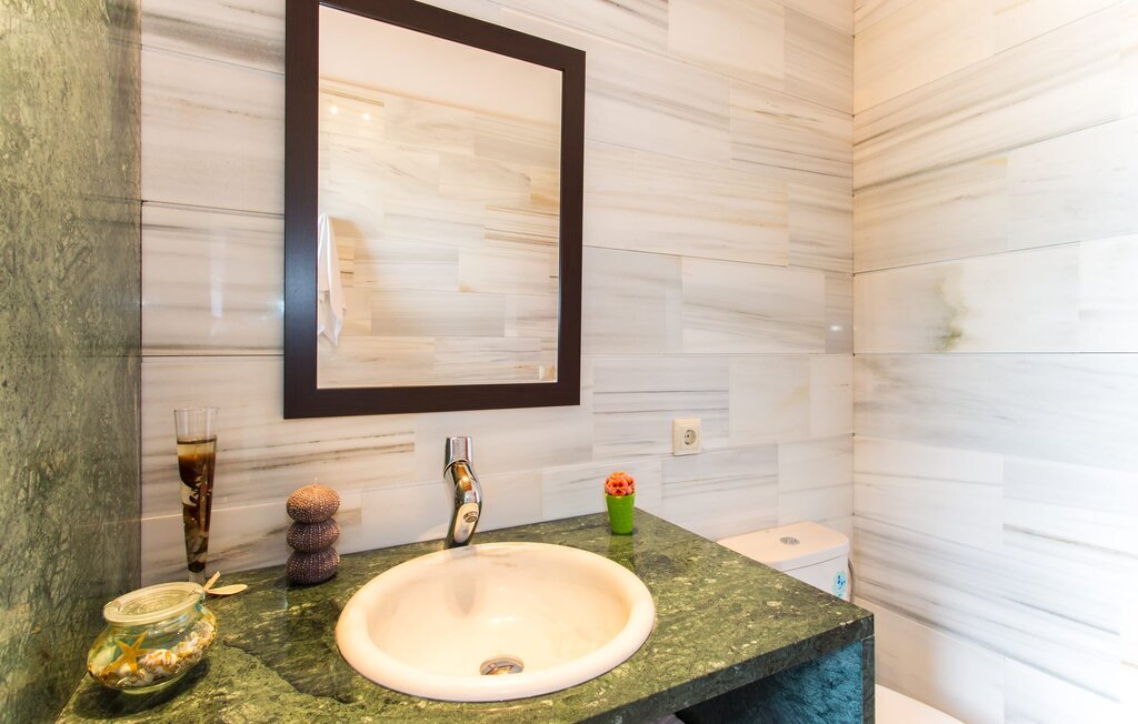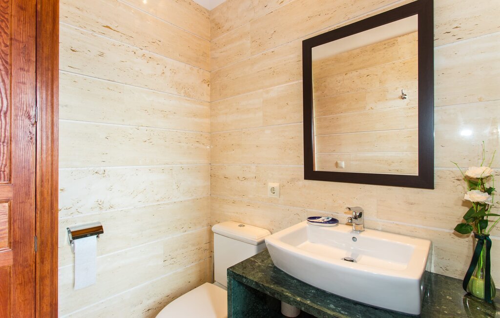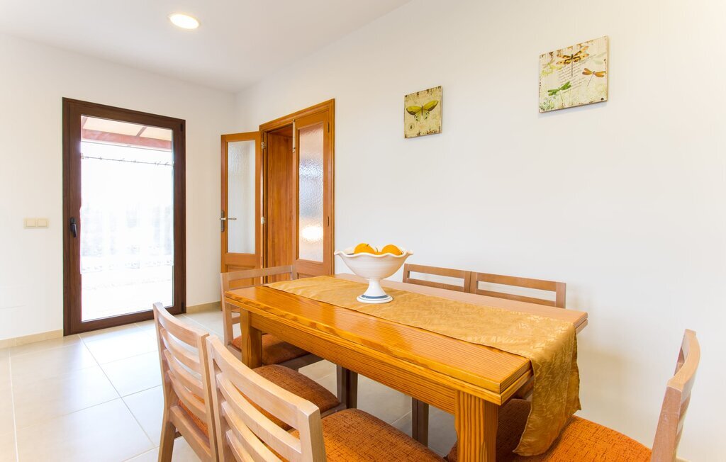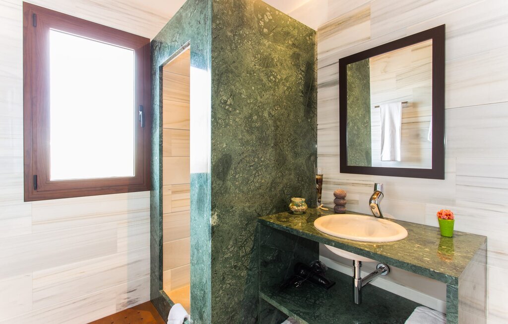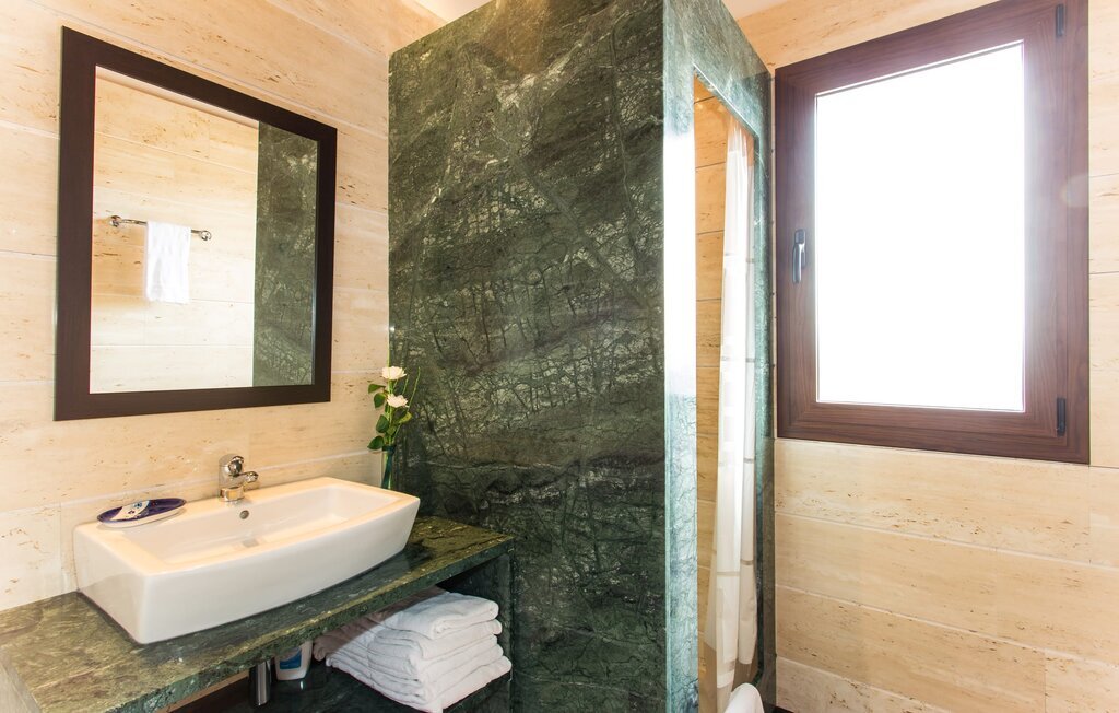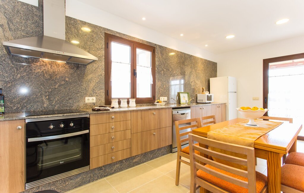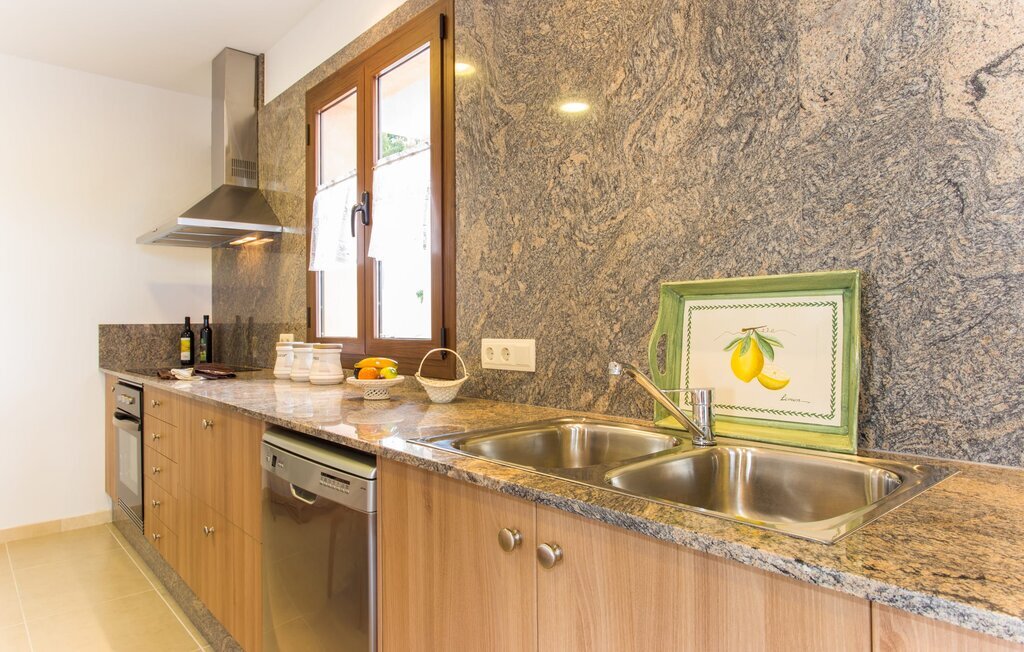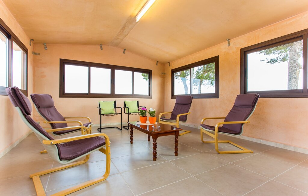 À l'exception de la chambre de la tour, toutes les autres pièces de la villa se trouvent au rez-de-chaussée, auquel on accède par plusieurs portes-fenêtres allant du sol au plafond. Cela vaut également en partie pour les chambres à coucher, où vous pouvez accéder directement au jardin le matin. L'aménagement de la villa est très récent et d'un goût intemporel. Des murs blancs et lisses avec de grands carreaux de sol dans un ton de terre clair sont complétés par des points lumineux encastrés dans les plafonds et assurent un standard moderne. Le plafond à poutres apparentes et les chaises en bois antiques apportent un peu de confort majorquin dans le salon, qui est équipé d'un canapé orange et d'un canapé brun chocolat. Parfait pour une agréable soirée télé ou une soirée conviviale. La cuisine séparée est équipée avec beaucoup de style. Une longue kitchenette dotée du confort technique souhaitable et d'un équipement complet, dont vous ne voudrez pas vous passer lorsque vous préparerez vous-même vos repas en vacances, séduit par ses façades en bois, complétées par du marbre de qualité. Ici aussi, des spots sont installés au plafond ; la table à manger peut être rallongée et offre à tous les hôtes suffisamment de place pour prendre leurs repas ensemble. Les 4 chambres à coucher sont équipées de lits doubles ou de lits simples séparés ; l'utilisation ou la répartition peut être modifiée par les hôtes selon leurs besoins. Vos vêtements de vacances trouveront suffisamment de place dans les armoires encastrées. Les deux salles de bains de haute qualité avec douche à l'italienne sont extrêmement modernes. Les douches sont conçues avec de la pierre de haute qualité. Le marbre sombre des zones de douche encastrées forme un contraste élégant avec la pierre naturelle claire et brillante posée sur les autres murs. Que vous voyagiez avec des amis ou avec deux familles, la villa offre suffisamment de place pour tous les invités et ce, à un prix extrêmement modéré dans un endroit magnifiquement rural et pourtant proche de la plage et de la ville.