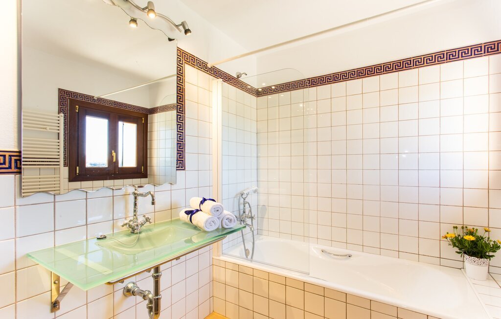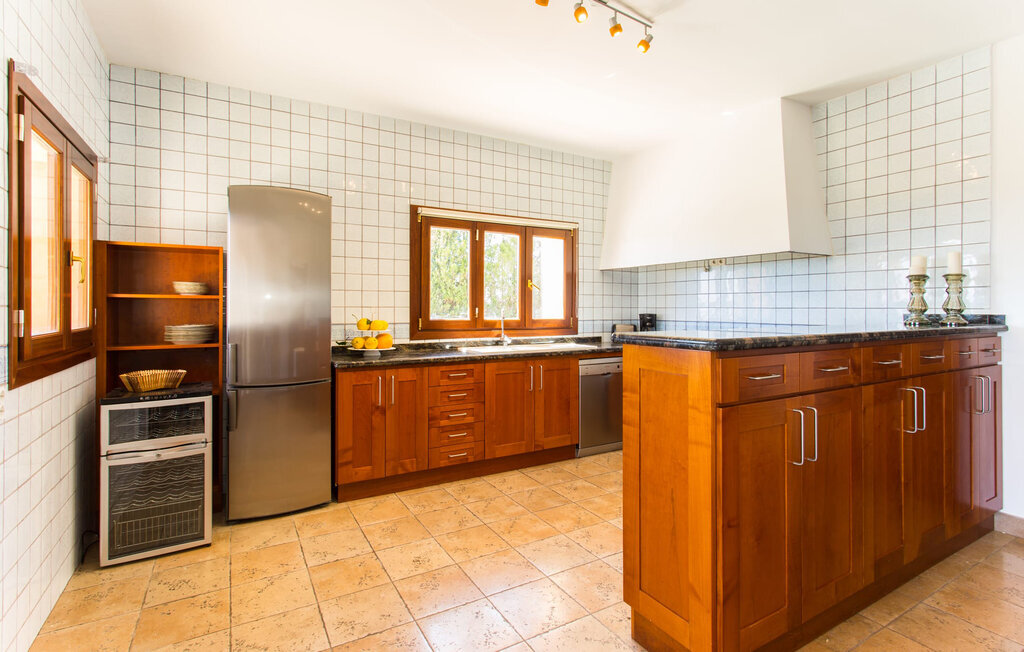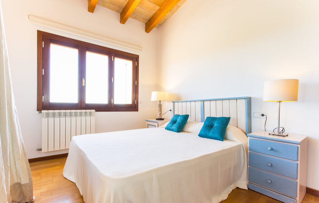 L'intérieur de Son Ropit est clair et convivial. Une entrée élégante mène à un salon décoré pour l'été. Une large porte vitrée permet d'accéder facilement à la terrasse couverte. Juste à côté : une cuisine bien équipée où vous pourrez agrémenter votre petit-déjeuner de jus de fruits fraîchement mixés. La salle à manger avec cheminée est intégrée à la cuisine. Toujours au rez-de-chaussée, il y a une chambre confortable avec un lit double et une salle de bain séparée avec baignoire. L'escalier à l'entrée mène à l'étage supérieur. Il abrite deux autres chambres à coucher doubles, dont l'une donne accès à une grande terrasse couverte avec une vue sensationnelle. À ce niveau, il y a également deux salles de bains individuelles avec baignoire et une autre terrasse ensoleillée avec vue sur la piscine. Pour les soirées conviviales, vous trouverez un bon choix de jeux de société. La maison de vacances se trouve à environ 10 minutes en voiture de Manacor et de la station balnéaire animée de Portocristo. Les deux villes offrent de bonnes possibilités de shopping. Les magnifiques plages de sable de Cala Millor, Cala Mendia, S'Illot et Sa Coma sont à environ 12 minutes en voiture.