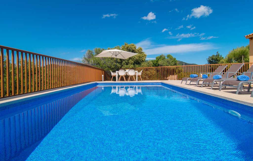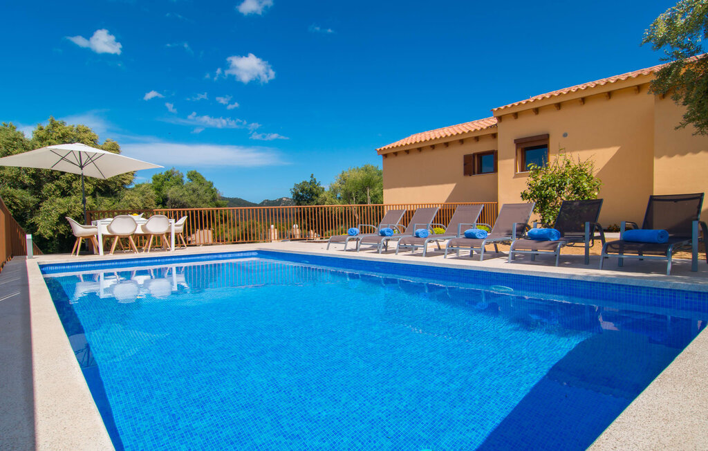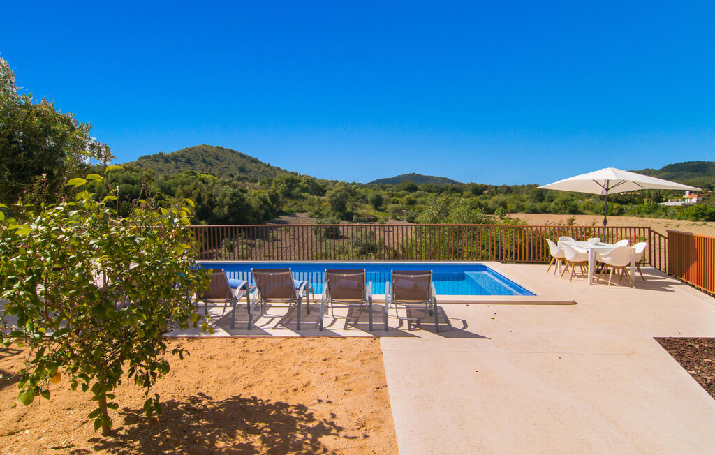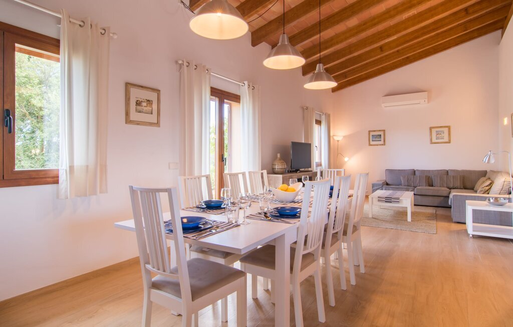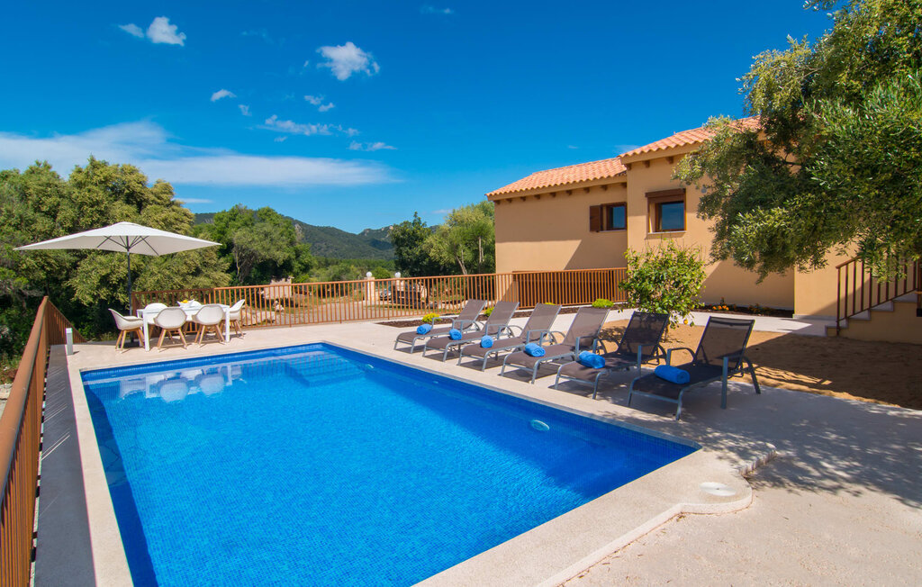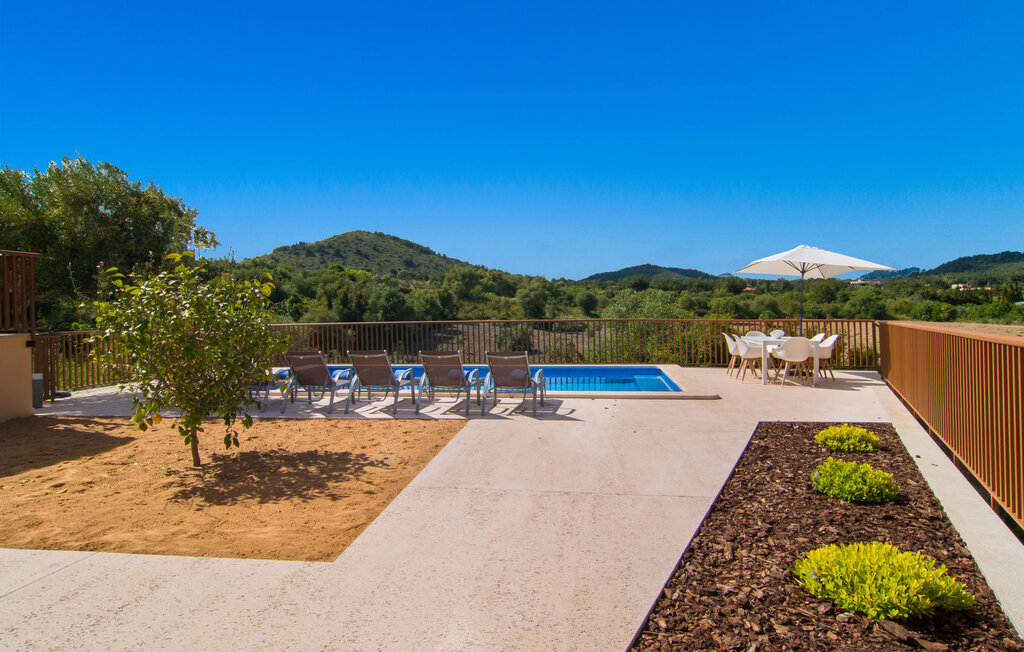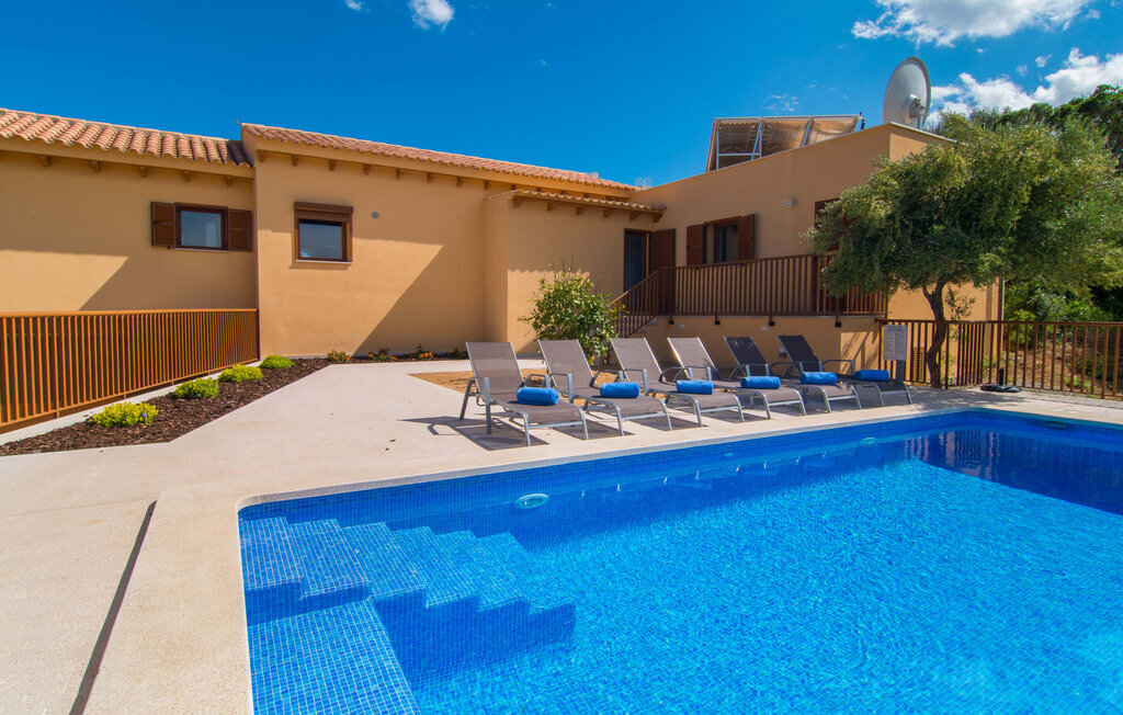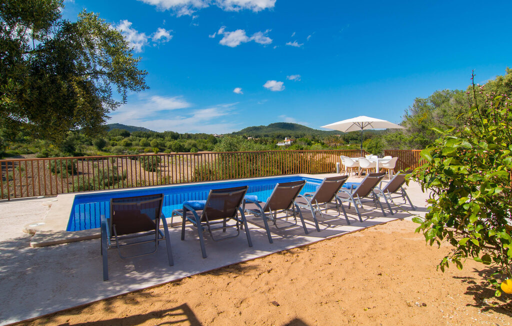 La Villa Bon Temps Pula Rustic est située sur un immense terrain de 15.000 m². Vous pouvez garer votre voiture juste à côté de la maison ; un petit escalier mène à la porte d'entrée. Jetons d'abord un coup d'œil à l'extérieur : depuis la grande terrasse ensoleillée, vous avez une vue fantastique sur la propriété et le paysage pittoresque. Une piscine de 8 x 4 m avec un fond en gradins offre un rafraîchissement bienvenu, surtout lors des chaudes journées d'été, et des plaisirs aquatiques pour toute la famille. Juste à côté de la piscine, vous trouverez de confortables chaises longues sur lesquelles vous pourrez prendre un bain de soleil à volonté. La grande table à manger à l'ombre d'un parasol est un endroit agréable pour le petit-déjeuner. Le soir, c'est particulièrement agréable de prendre une boisson fraîche en regardant le soleil se coucher sur la chaîne de montagnes Serres de Llevant. La maison dispose également d'un barbecue au charbon de bois, idéal pour griller du poisson frais et d'autres délices. Depuis la terrasse, un escalier mène à une cour intérieure, idéale pour jouer au football. La propriété a accès à de magnifiques sentiers de randonnée qui traversent une nature intacte.
