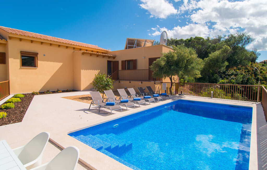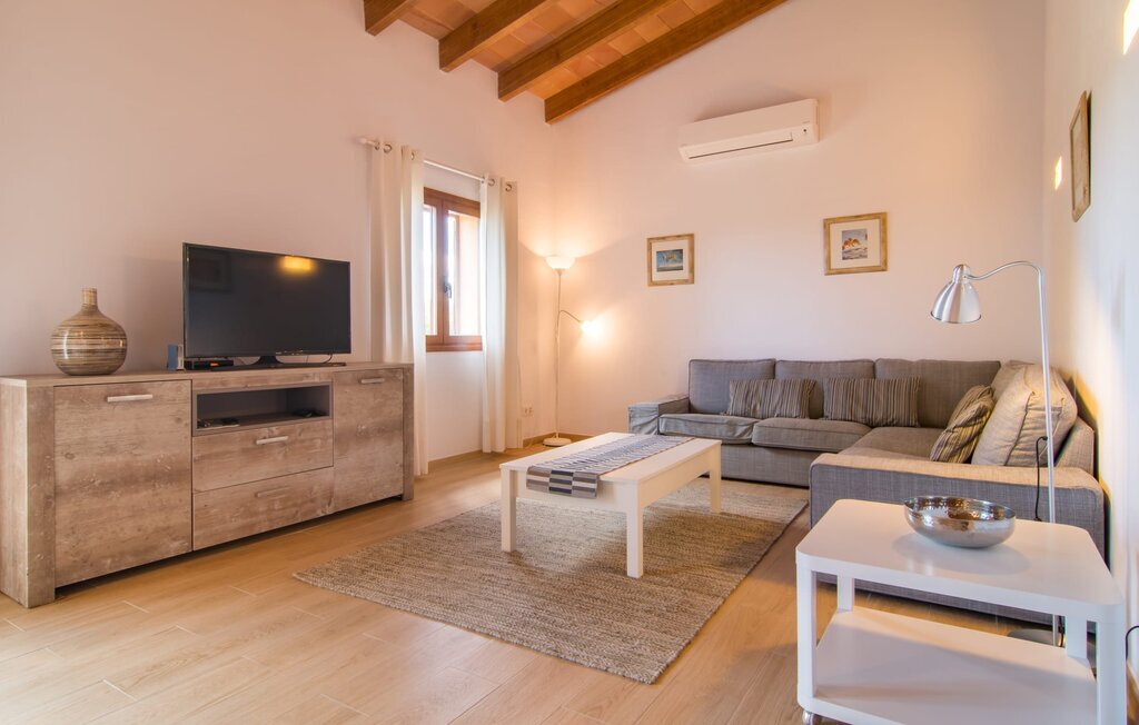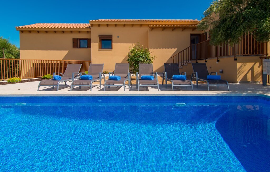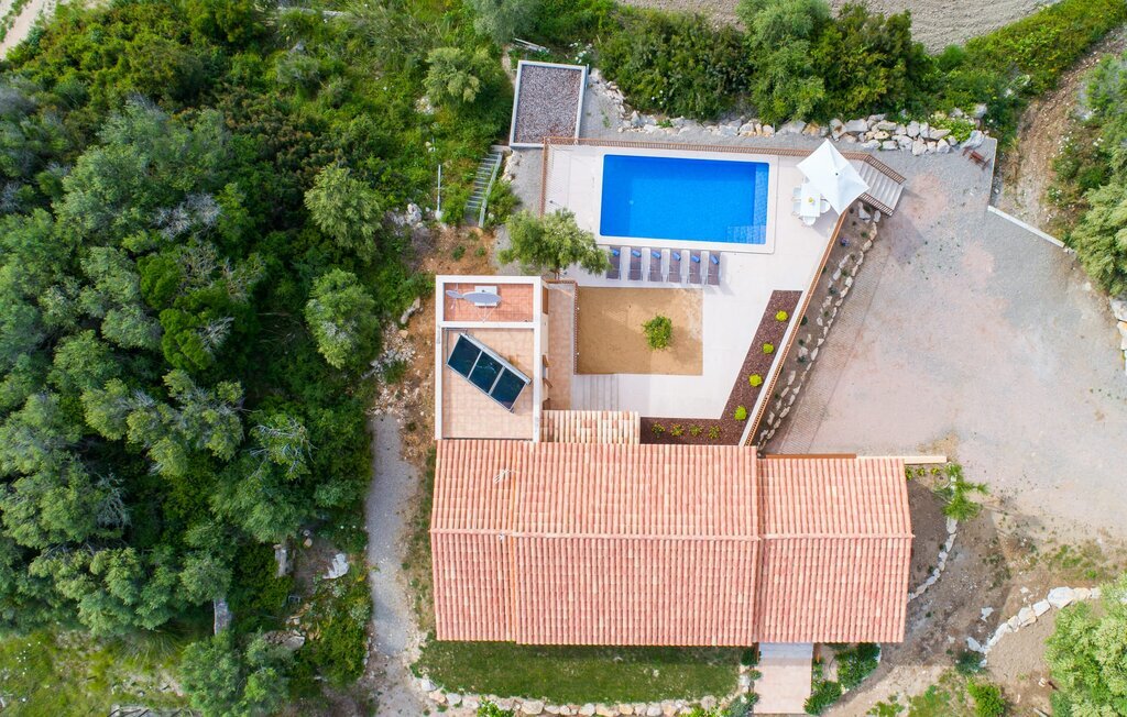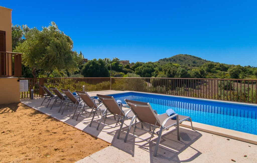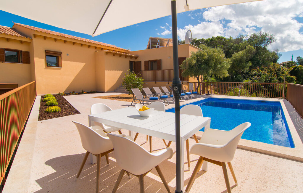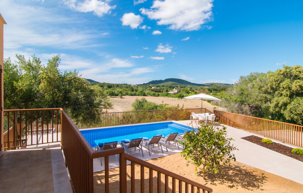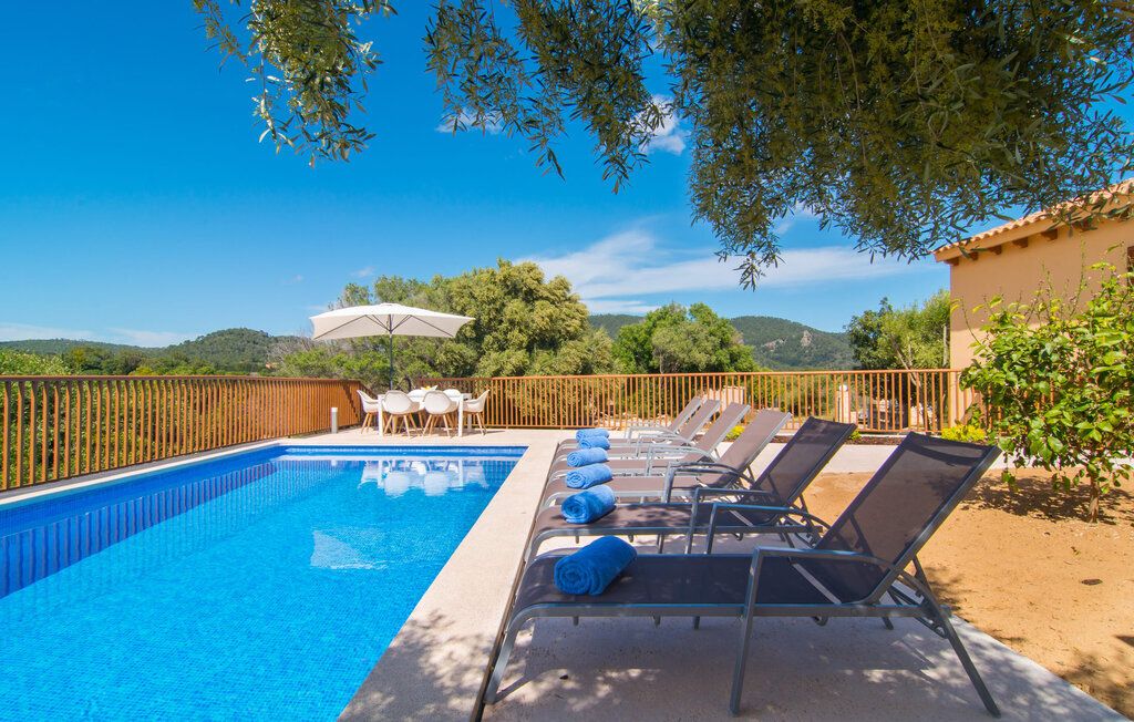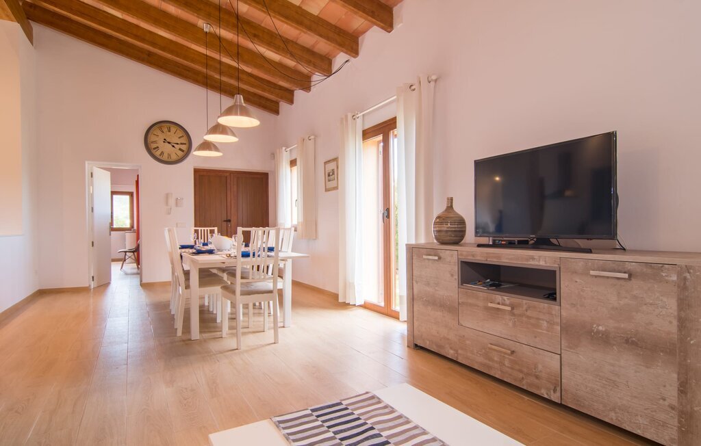 La Villa Bon Temps Pula Rustic est située sur un immense terrain de 15.000 m². Vous pouvez garer votre voiture juste à côté de la maison ; un petit escalier mène à la porte d'entrée. Jetons d'abord un coup d'œil à l'extérieur : depuis la grande terrasse ensoleillée, vous avez une vue fantastique sur la propriété et le paysage pittoresque. Une piscine de 8 x 4 m avec un fond en gradins offre un rafraîchissement bienvenu, surtout lors des chaudes journées d'été, et des plaisirs aquatiques pour toute la famille. Juste à côté de la piscine, vous trouverez de confortables chaises longues sur lesquelles vous pourrez prendre un bain de soleil à volonté. La grande table à manger à l'ombre d'un parasol est un endroit agréable pour le petit-déjeuner. Le soir, c'est particulièrement agréable de prendre une boisson fraîche en regardant le soleil se coucher sur la chaîne de montagnes Serres de Llevant. La maison dispose également d'un barbecue au charbon de bois, idéal pour griller du poisson frais et d'autres délices. Depuis la terrasse, un escalier mène à une cour intérieure, idéale pour jouer au football. La propriété a accès à de magnifiques sentiers de randonnée qui traversent une nature intacte.