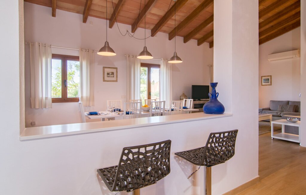 Votre maison de vacances est située dans un environnement rural, au cœur d'une nature magnifique : le parfum du fenouil sauvage, des plantes de romarin, des pins et des lauriers-roses s'allie à l'air salé de la Méditerranée pour créer le parfum unique des Serres de Llevant, qui s'étendent parallèlement à la partie orientale de la côte. La proximité de la mer et d'une série de magnifiques petites villes et villages qui ont conservé l'essence de Majorque rendent cette propriété particulièrement attrayante pour les vacanciers actifs qui souhaitent emporter beaucoup de choses. Grâce aux bonnes liaisons routières, vous pouvez vous rendre sur la magnifique Costa dels Pins en moins de 10 minutes. Là, vous pourrez flâner dans une station balnéaire de rêve, passer devant d'impressionnantes villas ou profiter des eaux turquoises et de l'incroyable plage de sable. La célèbre baie de Canyamel, avec ses chaises longues et ses douches, n'est pas très loin non plus. Dans la station balnéaire voisine de San Lorenzo, il y a chaque jeudi un marché hebdomadaire très particulier : les produits bio sont à l'honneur sur ce marché écologique, mais aussi l'artisanat et le vin cultivé localement. En outre, la région compte plusieurs terrains de golf aux fairways variés. La Villa Bon Temps Pula Rustic, construite en 2017, est située au cœur d'un magnifique environnement naturel, dans une zone rurale isolée, près de la station balnéaire de Son Servera, sur la côte est de Majorque. En moins de 10 minutes en voiture, vous atteignez la Coasta dels Pins avec ses eaux turquoises, son sable fin et le légendaire Bar Playa. Le populaire Pula Golf se trouve même à proximité, l'un des terrains de golf les plus exigeants de l'île. Dans les villages environnants, il y a de nombreux magasins et de magnifiques marchés hebdomadaires.