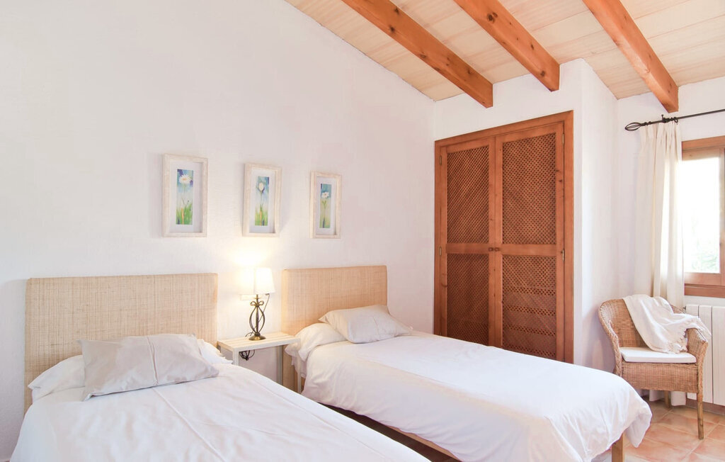 Aucune autre villa de notre portefeuille n'est aussi pittoresquement nichée dans un paysage parsemé d'amandiers, de cacaoyers et d'oliviers que la villa Son Murto, située dans l'un des meilleurs endroits du nord-est de Majorque. La maison se trouve sur un terrain de 7.000 m² entre les villages d'Artà et de Son Servera. L'immense terrain, avec son impressionnante longue allée privée, est en grande partie encore dans son état naturel, mais le terrain autour de la maison est aménagé en jardin bien entretenu dont vous pourrez profiter pleinement pendant vos vacances. Le cœur de l'espace extérieur est une grande pelouse avec une piscine en son centre. La magnifique piscine au carrelage bleu dispose de marches d'accès et d'une terrasse lounge accueillante sur un côté. Il y a également un espace barbecue pour faire des grillades en plein air le soir. Depuis la piscine, un petit chemin en pierre monte quelques marches jusqu'à une autre terrasse surélevée. Celle-ci est couverte et constitue la terrasse principale de la villa. La belle table à manger est un excellent endroit pour profiter des repas en plein air. Mais le véritable point fort se trouve sur le côté de la maison, où un lit balinais attend les goûts les plus exigeants, avec une vue sur le lointain et le calme pour s'évader du quotidien. La vue sur le paysage environnant depuis toutes les terrasses est tout simplement incroyable. Au pied de la villa se trouvent de nombreuses petites collines verdoyantes. Si les orangers portent des fruits pendant votre séjour à la villa, n'hésitez pas à les goûter ! Même non coupés, ils dégagent un parfum délicieusement intense, incomparable à tout ce que l'on peut acheter dans un supermarché britannique, et se dégustent délicieusement seuls ou sous forme de jus fraîchement pressé.
