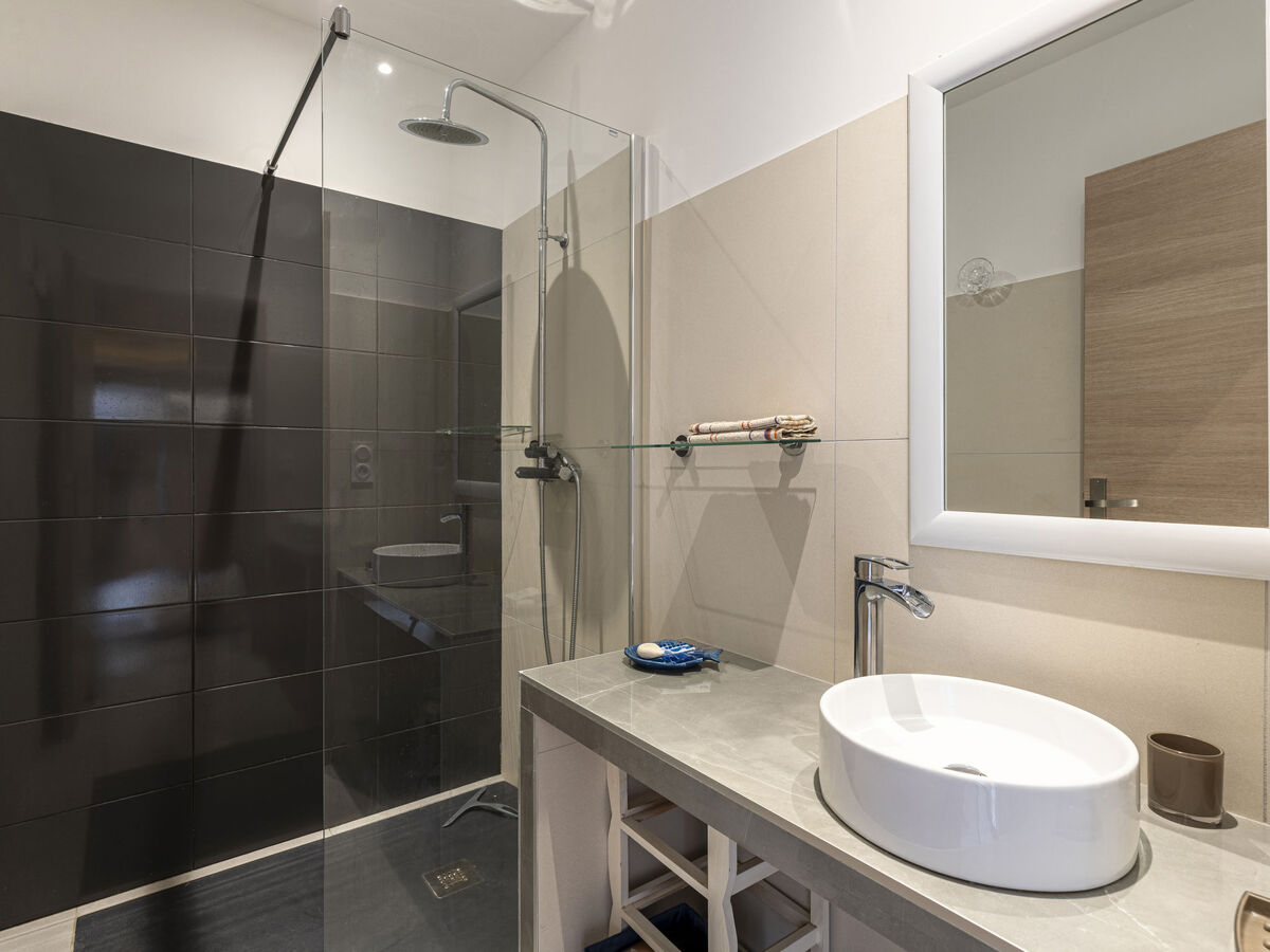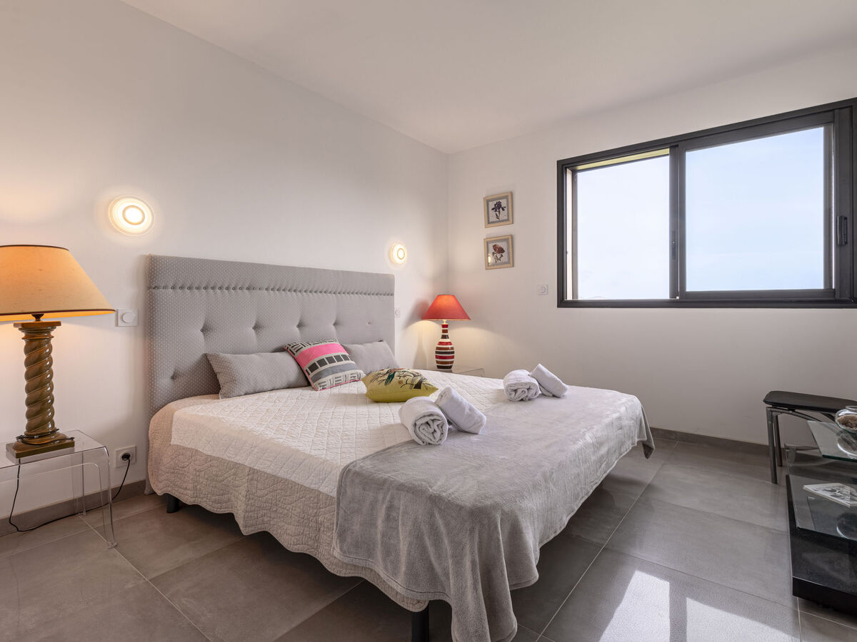1 chambre avec 1 grand-lit (160 cm, longueur 200 cm), WC séparés, douche et air-conditionné.