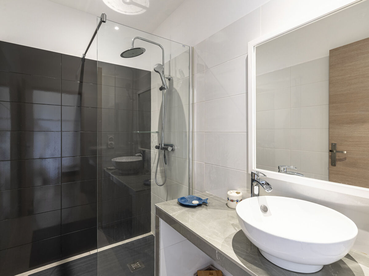 1 chambre avec 2 lits (90 cm, longueur 190 cm), douche et air-conditionné.