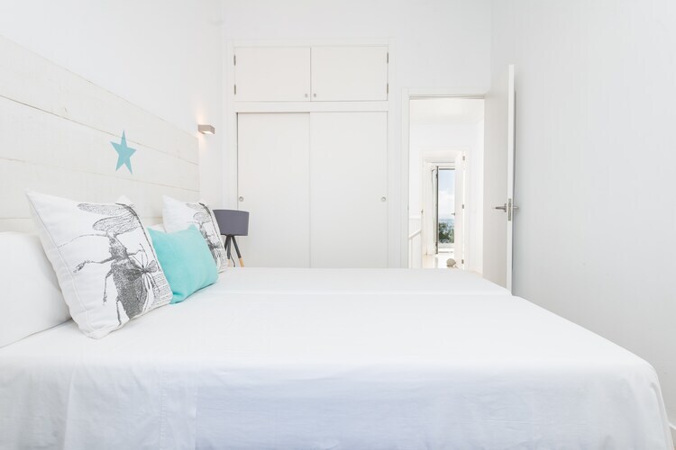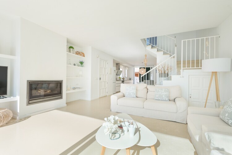 À l'intérieur, le salon-salle à manger ouvert dispose d'une télévision par satellite et d'une cuisine entièrement équipée avec plaques vitrocéramiques. Le coin buanderie comprend un lave-linge, un sèche-linge, un fer et une planche à repasser. Cet étage dispose de toilettes invités, tandis qu'à l'étage, une salle de bain avec douche dessert trois chambres, chacune avec deux lits simples, des armoires et des balcons. Un lit bébé, une chaise haute et des radiateurs sont également à votre disposition pour un séjour confortable.