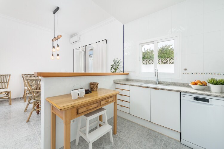 À l'intérieur, des espaces spacieux et une décoration fraîche vous accueillent dans un salon chaleureux avec télévision par satellite et lecteur DVD, agrémenté d'une vue imprenable sur la mer. La cuisine ouverte est équipée d'une plaque de cuisson vitrocéramique, d'un four et de tous les ustensiles nécessaires pour cuisiner à la maison. La climatisation intégrale assure un confort optimal toute l'année. Les trois chambres, dont deux doubles et une simple, sont toutes climatisées, avec salle de bain attenante avec douche et salle de bain séparée avec baignoire. Les équipements pratiques comprennent un lave-linge, un sèche-linge, un fer et une planche à repasser, un lit bébé et une chaise haute.
