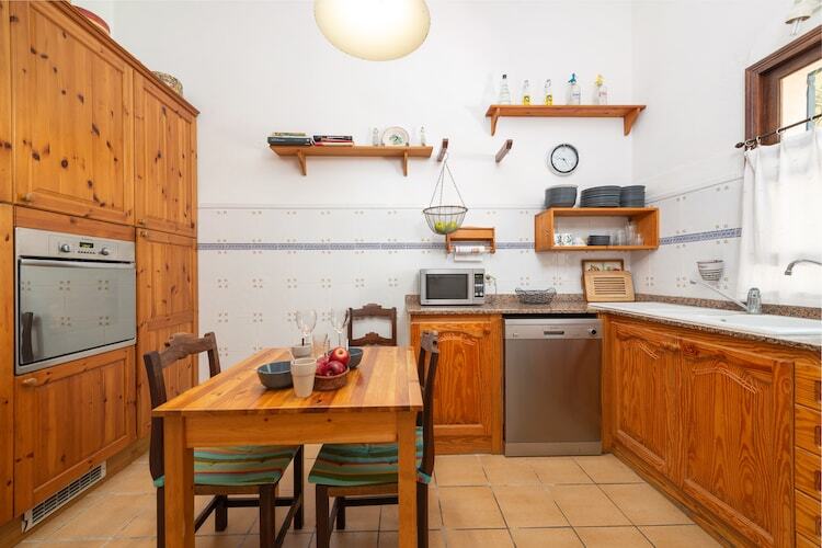 À l'intérieur, la maison offre une atmosphère confortable et accueillante. Le salon est parfait pour se rafraîchir avec la climatisation tout en regardant la télévision, et dispose d'une cheminée pour plus de confort. La salle à manger spacieuse est idéale pour déguster des repas préparés dans la cuisine entièrement équipée, qui comprend une cuisinière à gaz. La propriété comprend également un lave-linge, un sèche-linge, un fer et une planche à repasser. Au rez-de-chaussée, vous trouverez une chambre double et une salle de bain avec douche. À l'étage, il y a un espace de travail avec climatisation et cheminée, menant à trois chambres supplémentaires : deux avec lits doubles et une avec un lit simple (dont une avec accès à une terrasse). La deuxième salle de bain est équipée d'une baignoire. Toutes les chambres disposent de petits radiateurs, et un lit bébé et une chaise haute sont disponibles pour les familles avec bébés.
