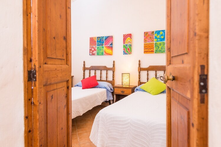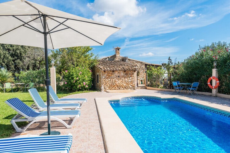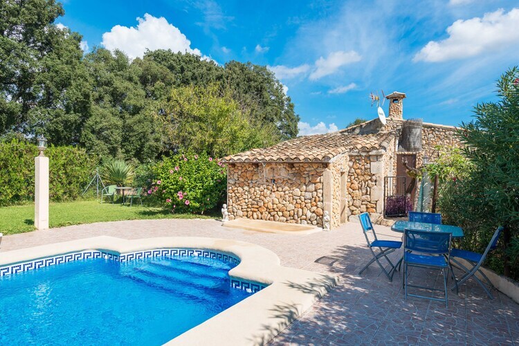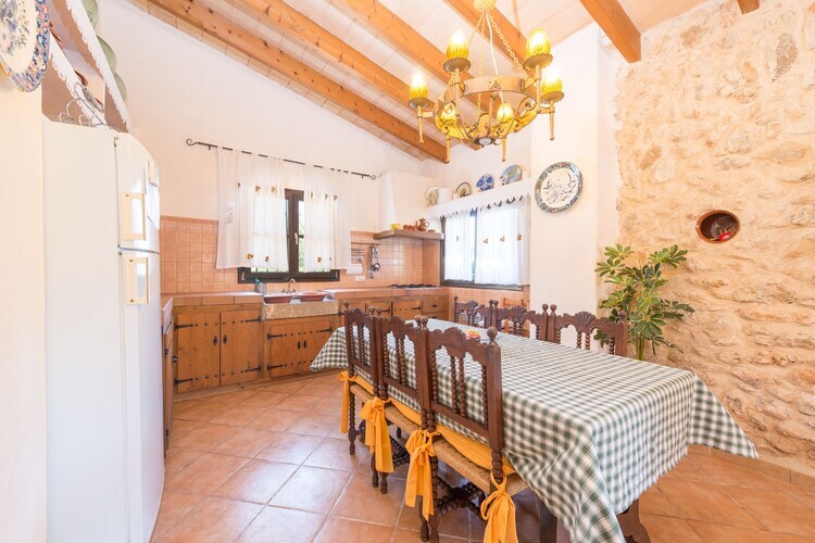 À l'intérieur, la villa présente une architecture majorquine traditionnelle avec des murs en pierre naturelle et des équipements modernes. Le salon spacieux dispose d'une cheminée et est combiné avec l'espace salle à manger et cuisine, favorisant une atmosphère commune. La cuisine est équipée d'une cuisinière à gaz, parfaite pour préparer des repas tout en profitant de la télévision par satellite.