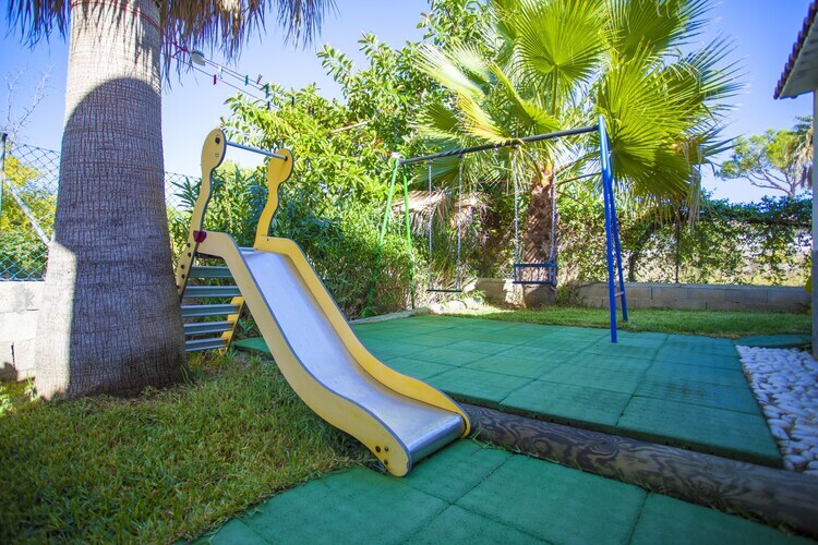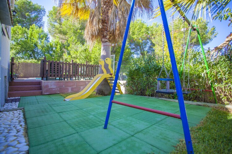 Salle de séjour(TV), salle à manger(table), cuisine(micro ondes, plaques chauffantes électriques, ), chambre(lit double), chambre(lit double), chambre(lit double), chambre(lit simple, lit simple), chambre(lit double), salle de bains(lavabo, WC, bidet), salle de bains(lavabo, WC, bidet), salle de bains(lavabo, WC, bidet), plaque de cuisson, cafetière/percolateur, four, lave-vaisselle , combinaison réfrigérateur/congélateur, baignoire, baignoire, douche, climatisation, jardin, mobilier de jardin, 6x transats, barbecue, piscine, lit d'enfant, chaise haute