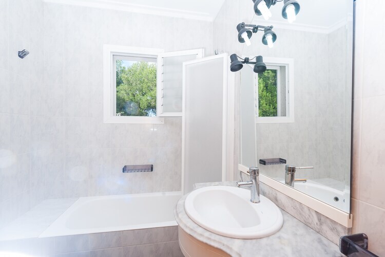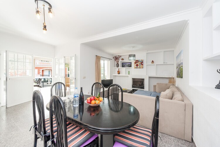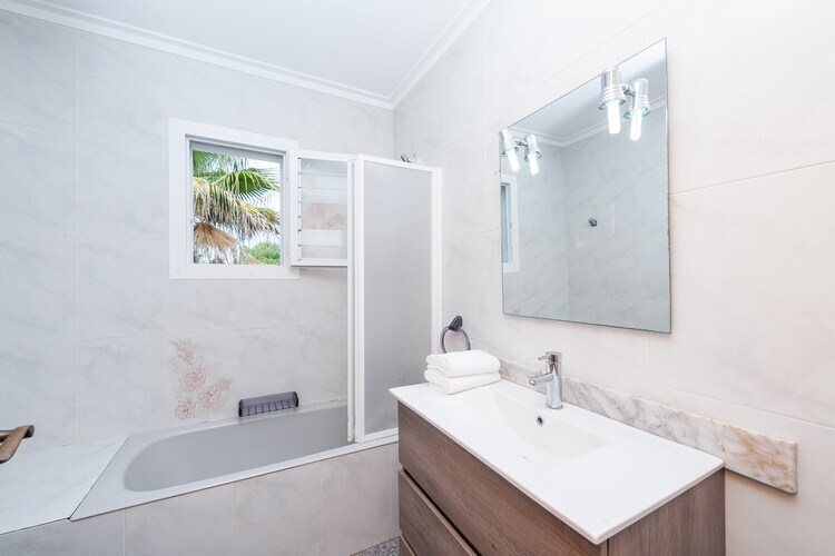 La maison de 220 m2 est distribuée sur 2 étages. Elle dispose de 5 chambres ; trois d'entre elles au rez-de-chaussée avec un lit double (une avec salle de bain en suite avec baignoire), et deux au 1er étage ; une avec deux lits simples et une avec un lit double, climatisation et salle de bain avec douche. Un lit bébé et une chaise haute sont disponibles sur demande. De plus, il y a une salle de bain au rez-de-chaussée.
