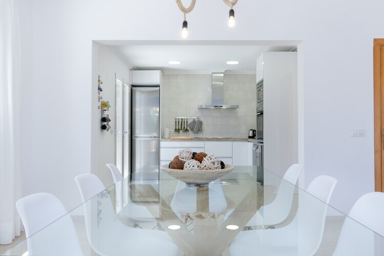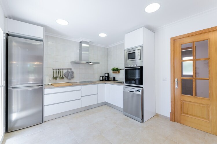 L'intérieur spacieux et bien entretenu vous accueille avec un salon-salle à manger lumineux et une cuisine entièrement équipée avec une plaque vitrocéramique, idéale pour préparer vos plats préférés. Le poêle à bois est éteint. La maison comprend trois chambres, toutes équipées de placards et de la climatisation : une chambre double avec salle de bain attenante, une chambre avec deux lits jumeaux et une chambre simple. Un lit bébé et une chaise haute sont disponibles. Une deuxième salle de bain avec baignoire dessert les autres chambres. Une buanderie (lave-linge, fer et planche à repasser) est idéalement située sur la terrasse.