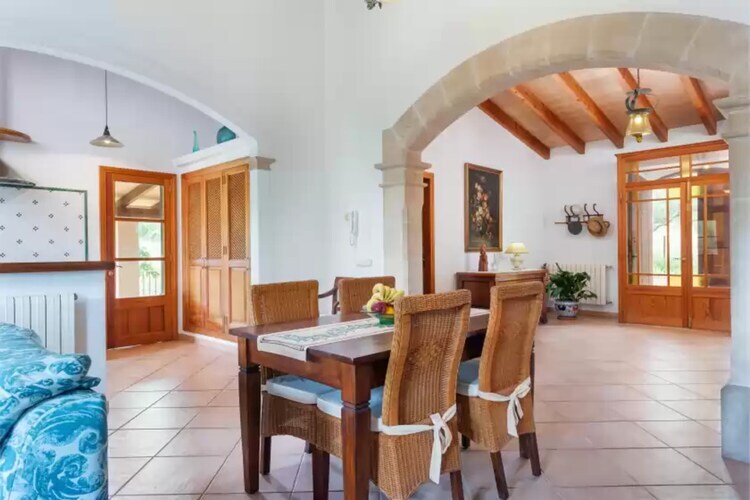 À l'intérieur, la maison présente un style majorquin simple et chaleureux, de plain-pied. L'entrée s'ouvre sur un confortable salon-salle à manger avec télévision par satellite, cheminée et table à manger pour quatre personnes. La cuisine semi-ouverte est équipée d'une cuisinière à gaz et de tous les équipements de base. Les deux chambres à deux lits partagent l'accès à une salle de bain avec baignoire, tandis qu'une seconde salle de bain avec douche offre un confort optimal. Un lit bébé, une chaise haute, le chauffage central au gaz et une buanderie avec lave-linge, fer et planche à repasser complètent les équipements.