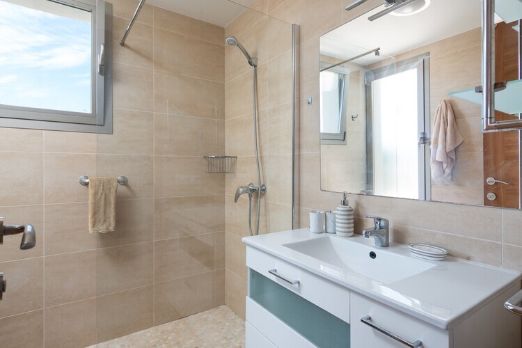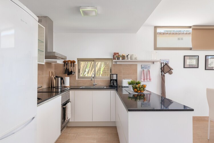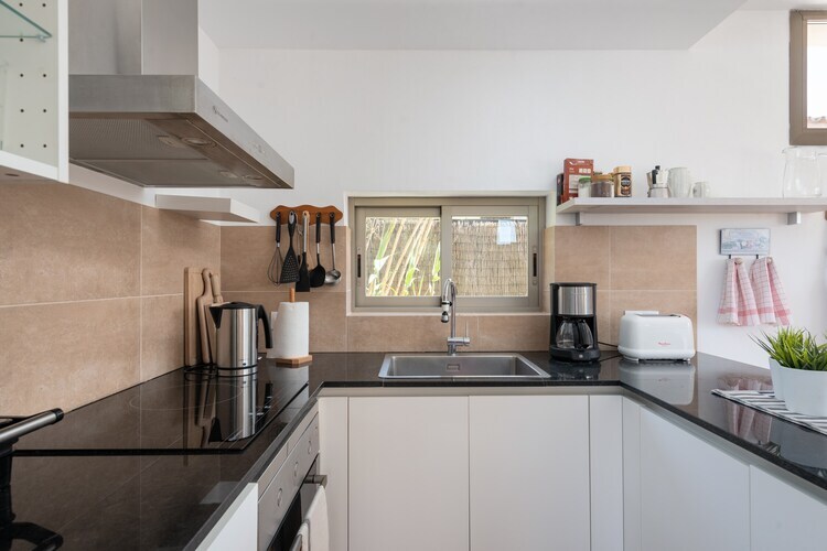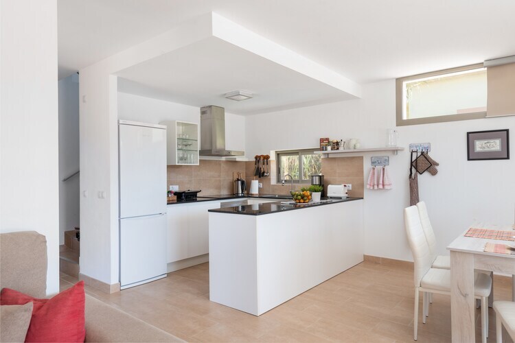 À l'intérieur, cette maison de deux étages offre un confort moderne. Le rez-de-chaussée comprend un spacieux séjour-salle à manger-cuisine ouvert avec climatisation, télévision et plaques vitrocéramiques, ainsi qu'une salle de bain avec douche. À l'étage, vous trouverez deux chambres climatisées avec lits doubles, accès terrasse et une autre salle de bain complète. La buanderie comprend un lave-linge, un sèche-linge, un fer et une planche à repasser. Un lit bébé et une chaise haute sont disponibles sur demande.