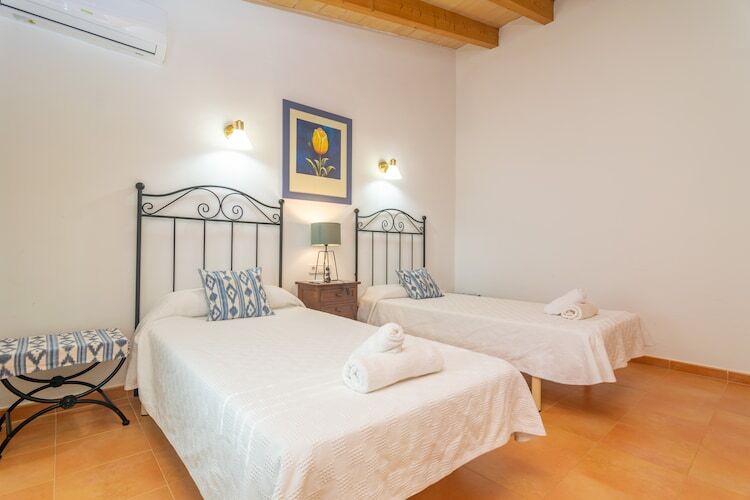 Cette maison à deux étages allie le charme traditionnel majorquin à des équipements modernes. Le rez-de-chaussée comprend un salon avec télévision par satellite, un coin repas climatisé pour dix personnes et une cuisine séparée avec plaques vitrocéramiques. Une chambre avec deux lits jumeaux et une salle de douche attenante sont également à votre disposition. À l'étage, vous trouverez un autre salon et quatre chambres, chacune avec salle de bain attenante, climatisation et chauffage central au fioul. Deux chambres sont équipées de lits doubles et deux de lits jumeaux. Un lit bébé et une chaise haute sont disponibles pour les bébés.