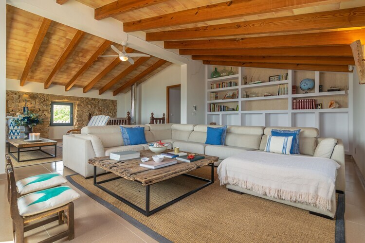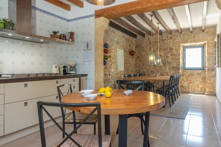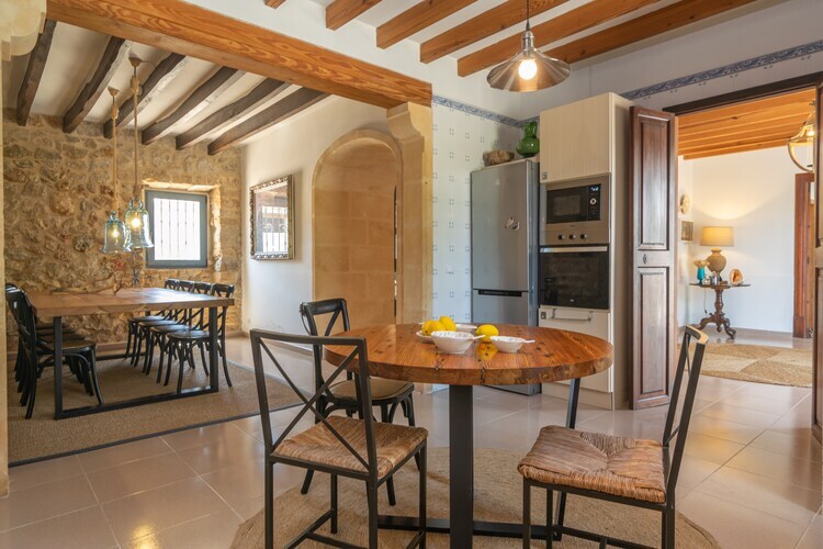 La casa de dos plantas ha sido reformada y decorada con un gusto exquisito, aprovechando las estancias superiores para poder disfrutar de las vistas al mar. En la planta baja encontramos una maravillosa cocina comedor equipada con cocina de gas y con espacio para 8 comensales. Hay otro comedor más formal donde destacan la piedra y la madera. Esta planta se completa con un dormitorio con 2 camas individuales y un baño con bañera. En el piso de arriba tenemos la fabulosa sala con impresionantes vistas de la bahÃa de Pollença y equipada con Smart TV-sat. En esta planta hay 3 dormitorios, los tres con cama doble y uno de ellos además con baño en suite con bañera. Los cuatro dormitorios están equipados con AC. Hay otro baño con bañera en esta planta. Si viajan con su bebé podemos proporcionarles una cuna y una trona. En la lavanderÃa encontrarán lavadora, secadora, plancha y tabla para planchar. 5 ventiladores de techo y 4 radiadores eléctricos completan el alojamiento.