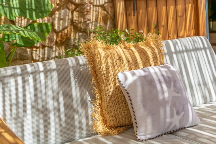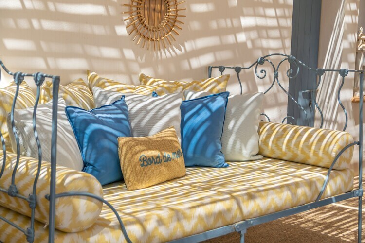Los exteriores son perfectos para disfrutar del buen tiempo y relajarse después de pasar el dÃa en la playa. Broncéense bajo el sol del mediterráneo en las cómodas camas, degusten una deliciosa barbacoa bajo el porche y relájense en los sofás de exterior con una copa al atardecer. Hay vecinos cercanos.
