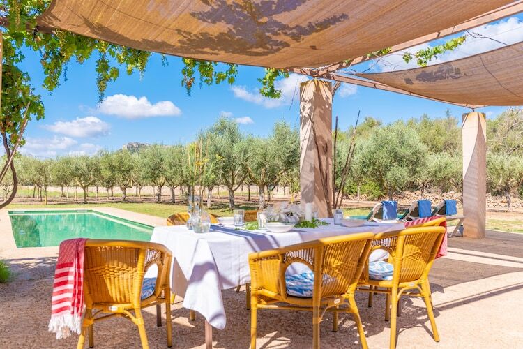 Los exteriores de la casa son un verdadero oasis de tranquilidad. La amplia piscina de cloro, con unas dimensiones de 10 metros de largo por 4 metros de ancho y una profundidad que oscila de 0.6 metros a 1.80 metros, es perfecta para nadar y refrescarse bajo el sol. Rodeada de un cuidado césped natural y árboles frutales, el jardÃn cuenta con 6 tumbonas donde relajarse bajo el cálido sol mediterráneo. Antes de adentrarse al interior de la casa, tienen un porche amueblado equipado con una barbacoa fija donde poder hacer deliciosas parillas.