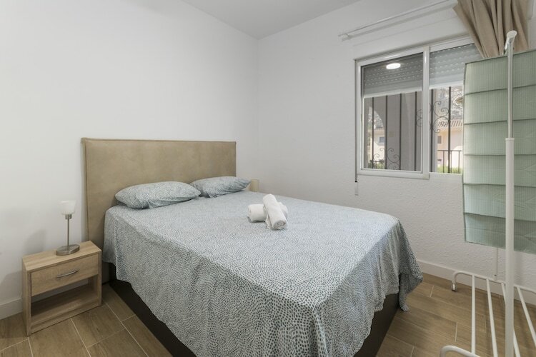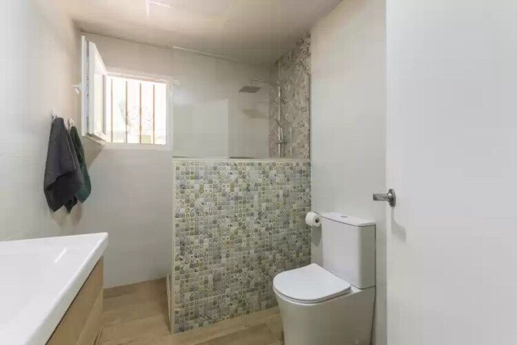 À l'intérieur, le salon climatisé dispose d'une Smart TV et d'un canapé-lit double pour les invités supplémentaires. La salle à manger ouverte donne sur une cuisine à induction entièrement équipée. Trois chambres – deux doubles et une twin – sont ventilées et desservies par une salle de bain complète avec douche et toilettes séparées. Un lave-linge, un fer à repasser et du matériel pour bébé sont également disponibles.