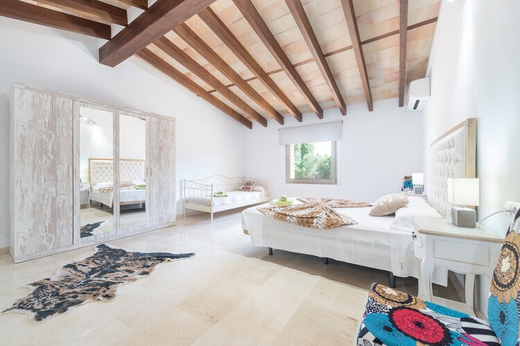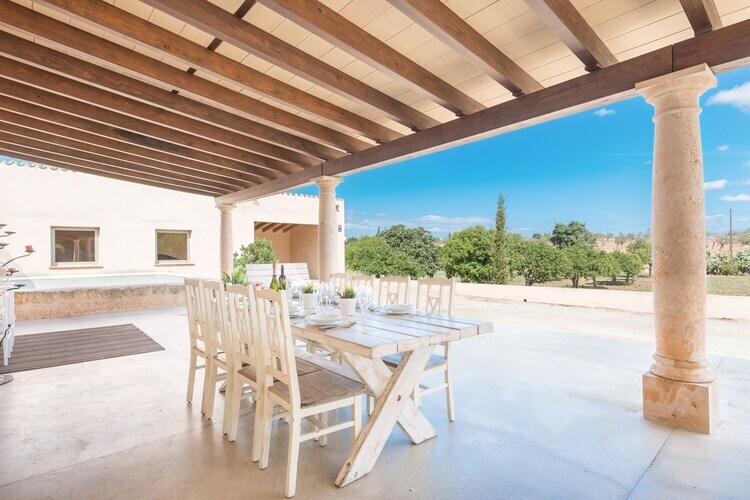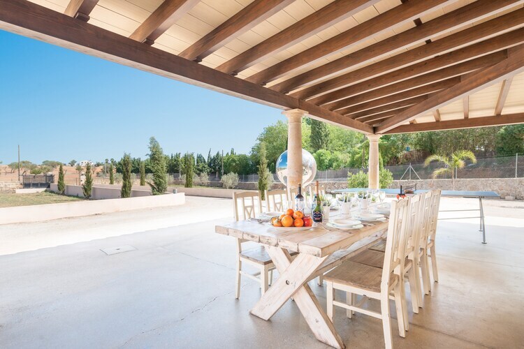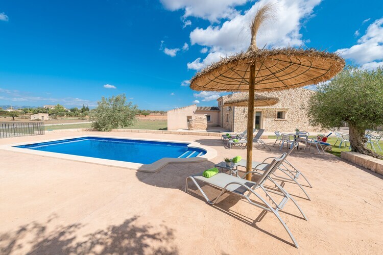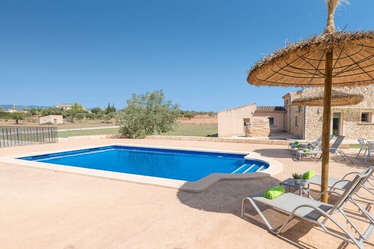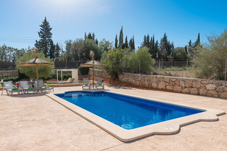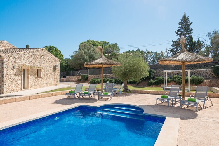 Situada en el centro de Mallorca, en un entorno rural se halla esta joya de finca dentro de una parcela vallada de más que 8000 m2. La piscina privada de cloro tiene un tamaño de 8 x 4 metros y una profundidad entre 1.25 y 2.15 metros y es sin duda el protagonista de la casa. Está rodeada de una zona de solárium con 8 tumbonas, 4 sombrillas y una ducha exterior, ideal para los amantes del sol. El porche espacioso se encuentra en la parte delantera de la finca y tiene muchos rincones para disfrutar de una cena al aire libre, compartir una botella de cava con amigos o leer un libro tranquilamente. Todos los chefs de la familia encuentran una barbacoa fija donde preparar deliciosos platos al aire libre. No hay vecinos directos.