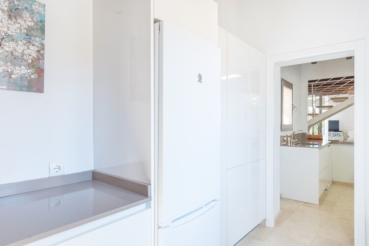 Una vez dentro, nos sorprende una decoración moderna y un mobiliario elegante. El salón-comedor, abierto a la cocina, es un lugar bonito para disfrutar de una tarde tranquila viendo la televisión (canales en castellano, francés e alemán). Seguro que pasará muchas horas inolvidables compartiendo charlas y risas alrededor de la mesa de comedor, que ofrece 8 sillas. En la cocina encontramos un equipamiento bueno, incluyendo una vitro cerámica, una trona de bebé, algunos utensilios de cocinar asà como una lavadora, plancha y tabla para planchar. Esta casa ofrece tres dormitorios, con aire acondicionado y armario, uno con cama de matrimonio y baño en-suite con ducha, y otro con dos camas individuales y salida a la terraza, en la planta baja. Y el tercer dormitorio, en la primera planta, dispone de cama doble y baño con bañera y espacio para preparar una cuna si viaja con su bebé. Dos radiadores eléctricos completan el equipamiento.