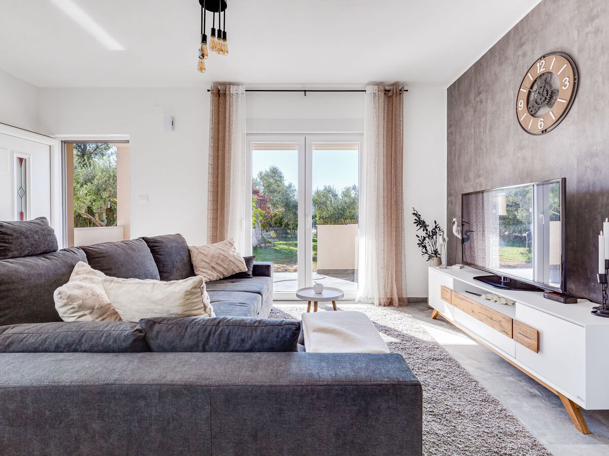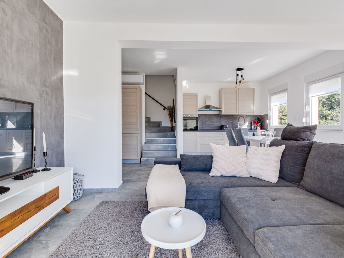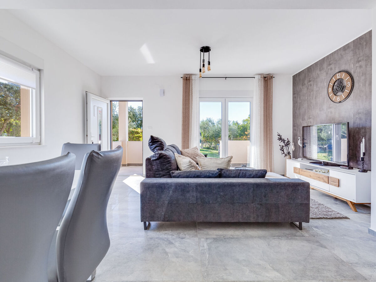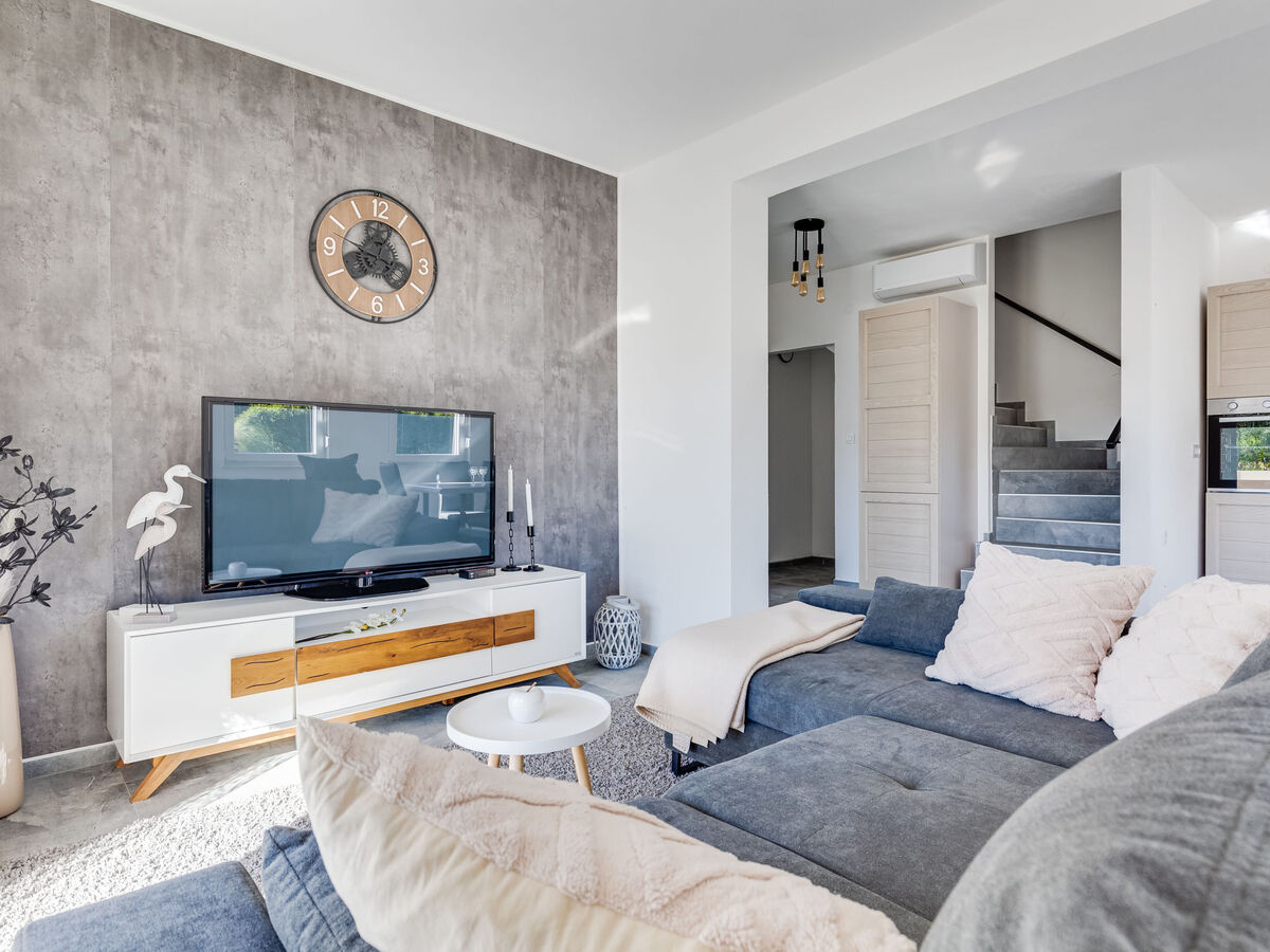 Aménagement moderne: séjour/salle à manger avec TV (satellite) (écran plat), air-conditionné.