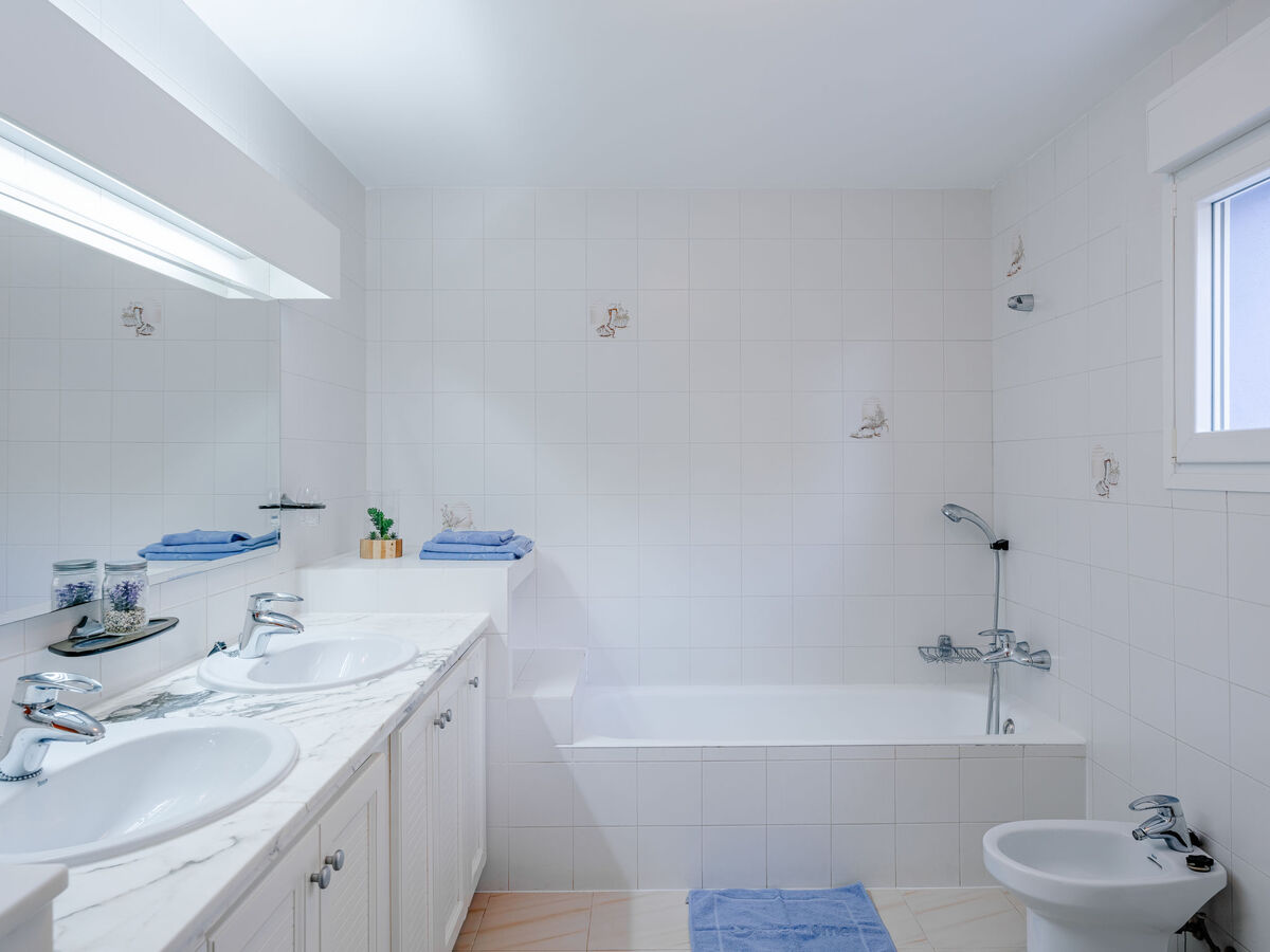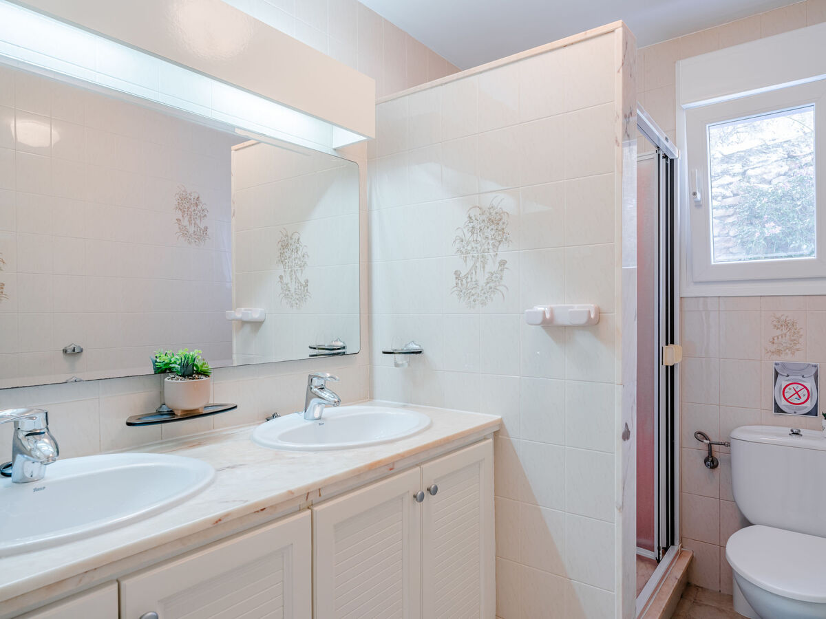 1 chambre double avec 2 lits (90 cm, longueur 190 cm), bain/douche/bidet/WC, double vasque, air-conditionné et chauffage à air chaud.