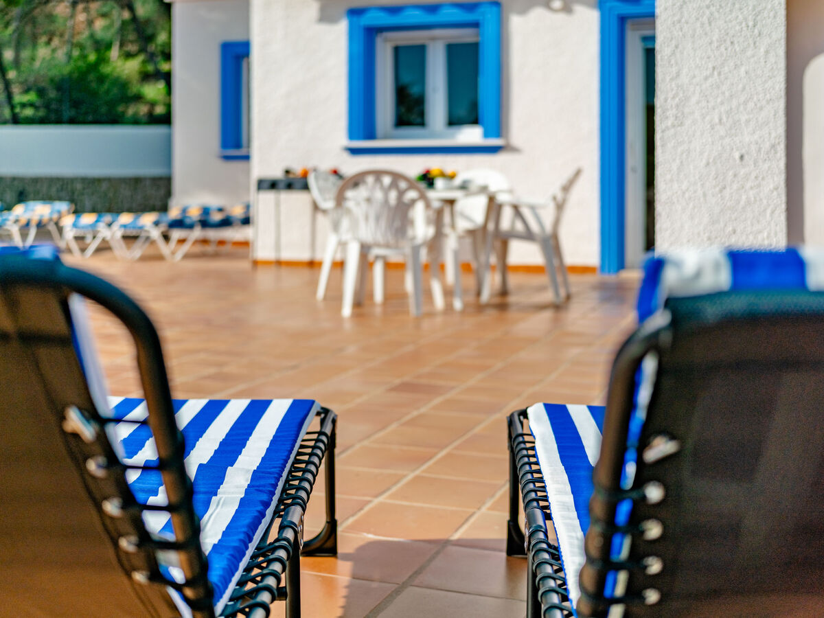 Meubles de terrasse, barbecue, chaises longues, loggia.
