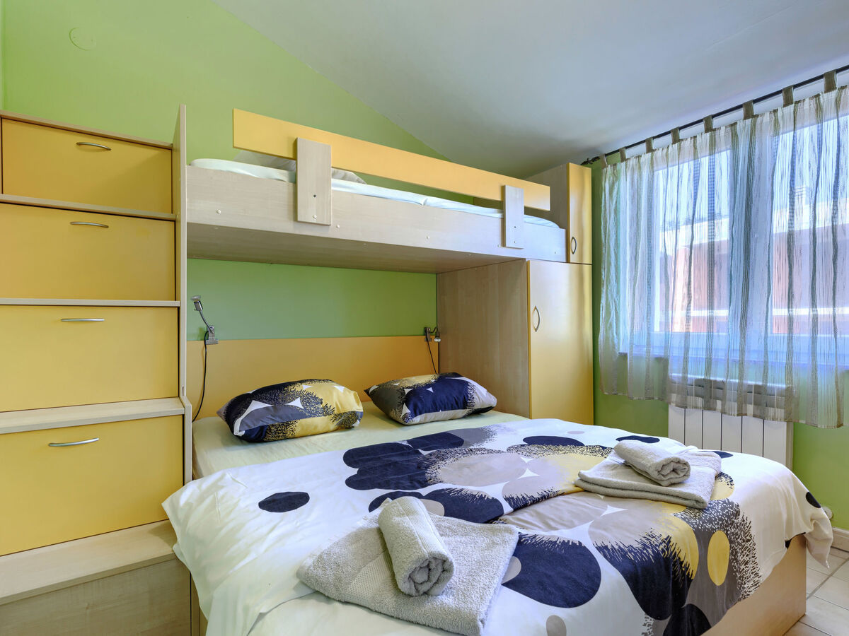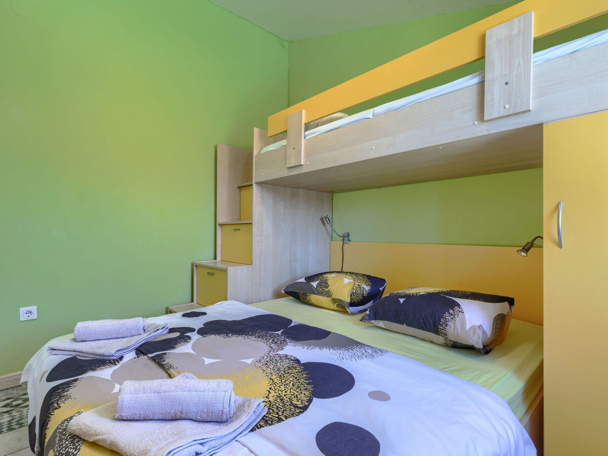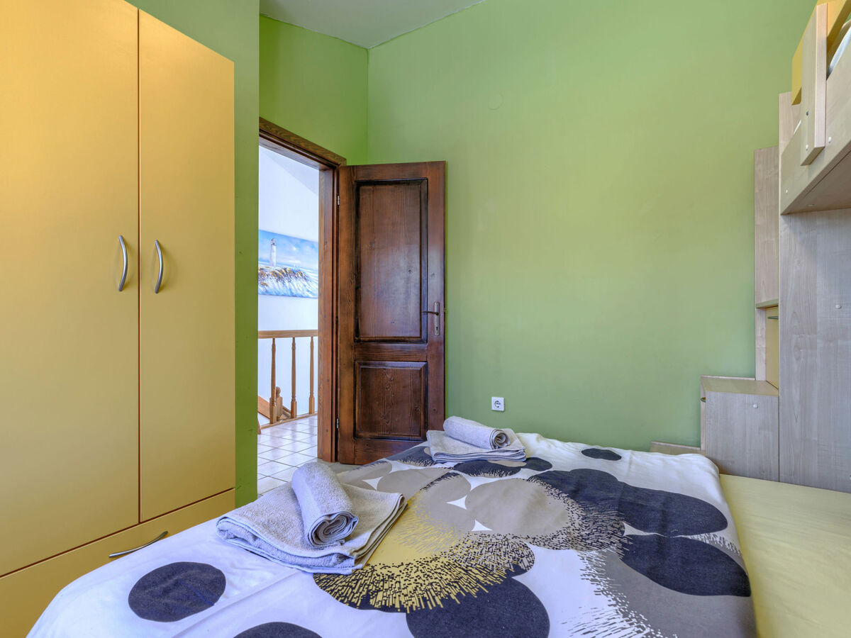 À l'étage supérieur: 1 chambre avec 1 x 1 lits superposés (80 cm, longueur 200 cm), 1 grand-lit (160 cm, longueur 200 cm).