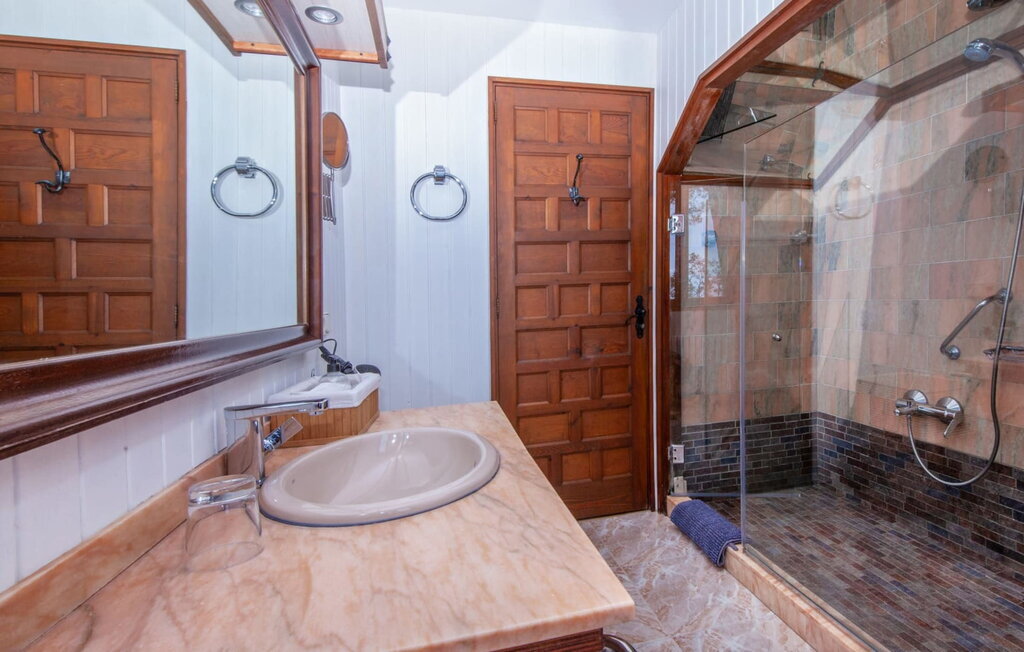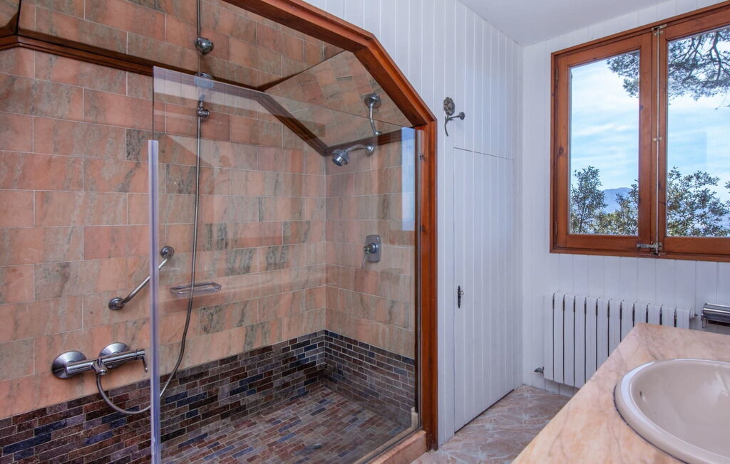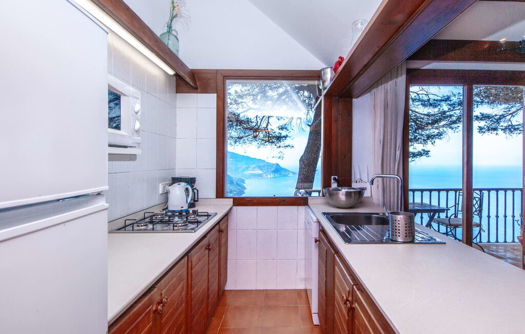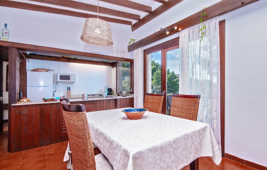 L'intérieur dégage un charme rustique et plusieurs fenêtres offrent une vue à couper le souffle. Au rez-de-chaussée se trouvent une chambre double, une chambre à deux lits et une salle de bain. À l'étage supérieur, un grand espace de vie avec une cuisine et un coin repas vous attend. La deuxième salle de bains se trouve dans une annexe sur le côté de la maison et est accessible par une entrée séparée. Devant cette annexe se trouve un balcon avec une vue magnifique sur la mer. La villa est équipée du chauffage, d'une cheminée et de la climatisation pour offrir un confort tout au long de l'année.