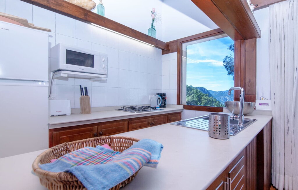 La villa "Miraet" est située dans un endroit absolument sublime sur la spectaculaire côte ouest de Majorque et offre une vue sensationnelle sur la plus belle partie du littoral de l'île. Elle se trouve à 400 m au-dessus du niveau de la mer et à égale distance des pittoresques villages de Deìa et Valldemossa, qui disposent tous deux de bars, de restaurants et d'un petit supermarché. L'époustouflante baie de Cala Deìa n'est qu'à une courte distance en voiture.
