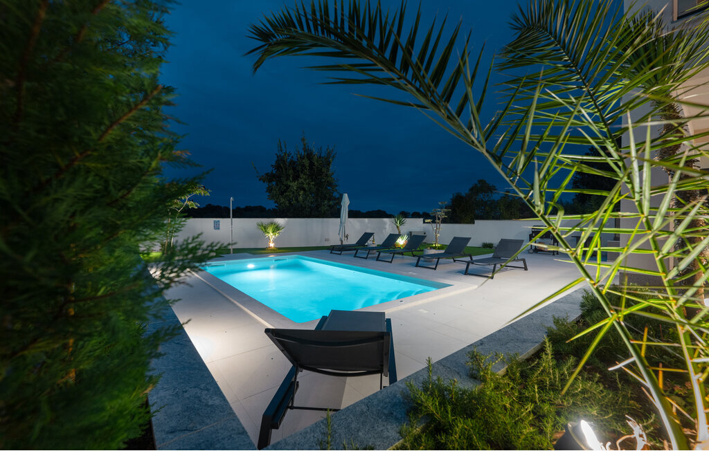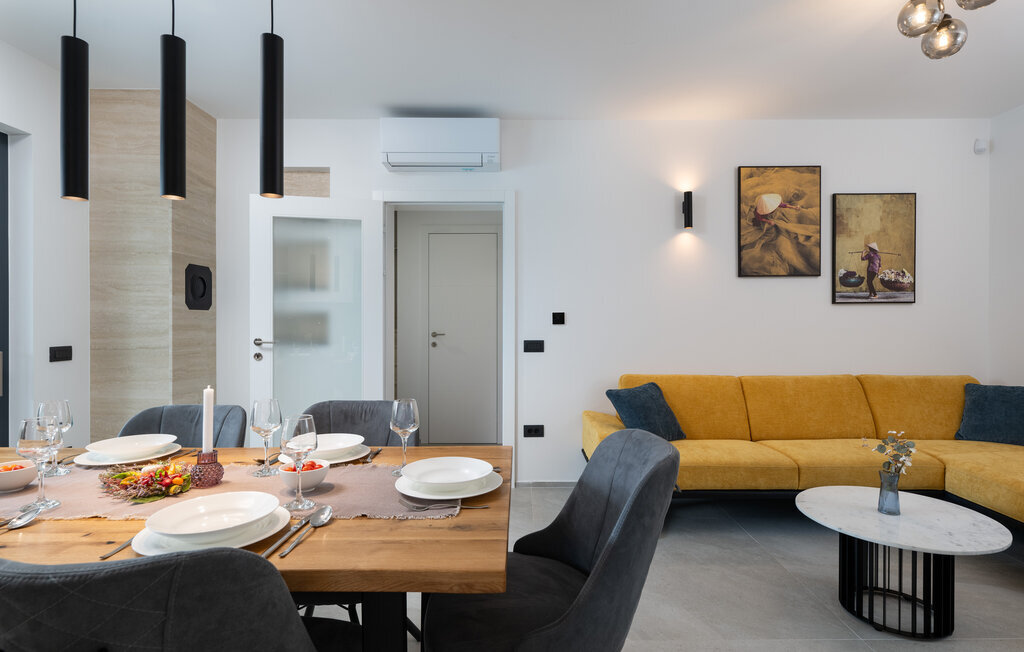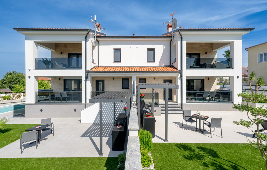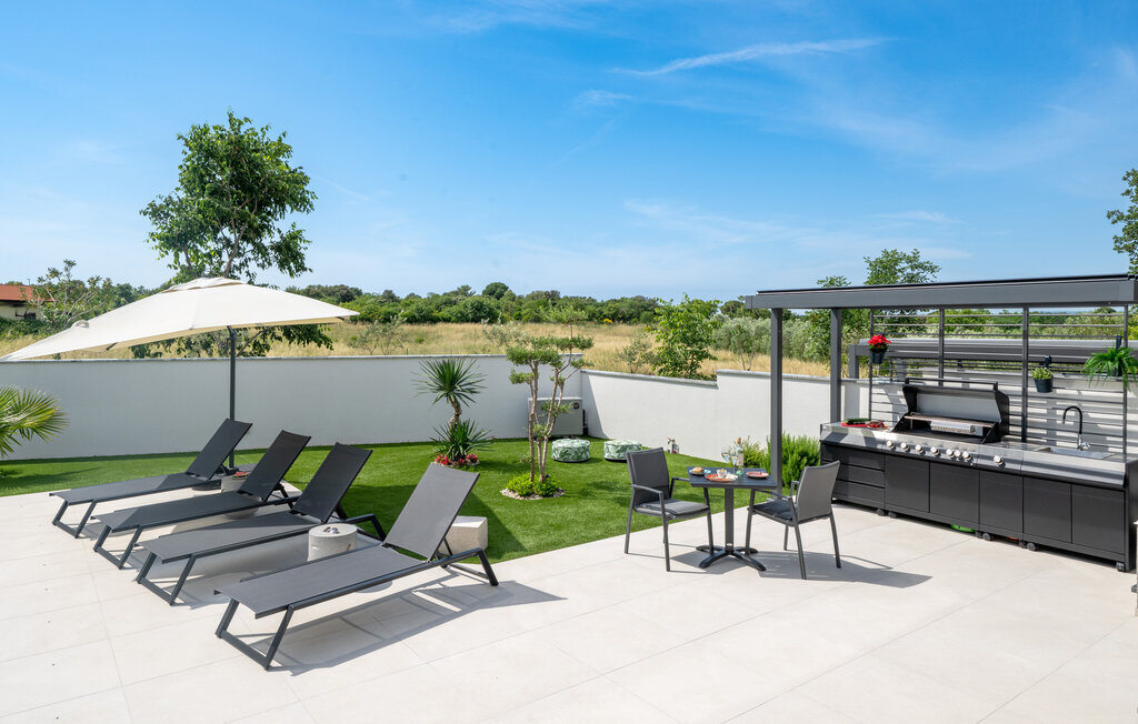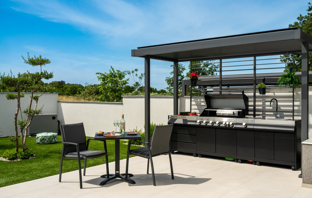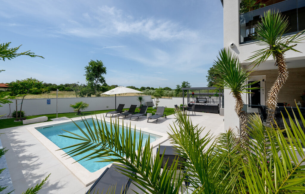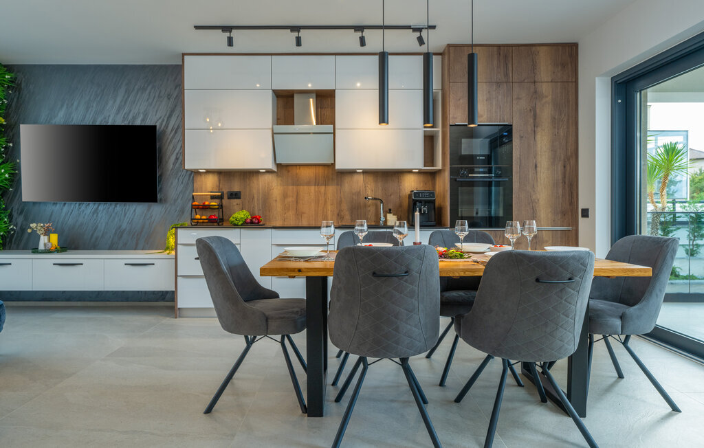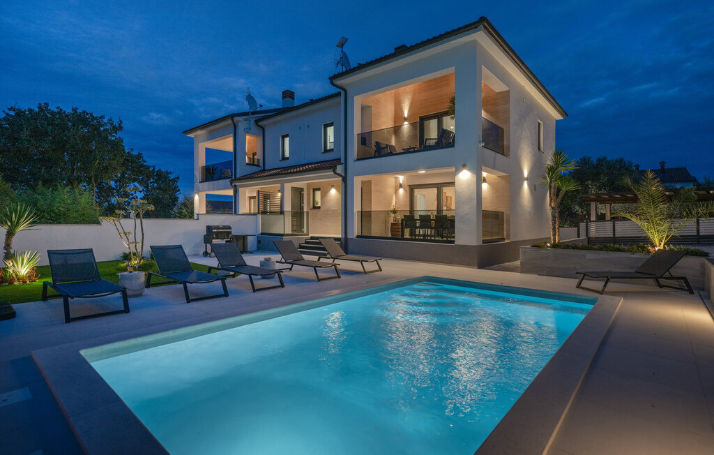 Cette luxueuse maison à Stinjan, sur la côte de l'Istrie, vous offre, à vous et à vos proches, une merveilleuse oasis de détente. Commencez la journée sur la terrasse spacieuse, où une table à manger vous invite à prendre des petits déjeuners agréables en plein air. Profitez de la vue sur l'espace piscine accueillant et les environs paisibles tout en respirant l'air frais du matin. À l'intérieur, un concept de vie élégant et ouvert vous attend. Installez-vous dans le confortable canapé et passez des soirées relaxantes en regardant vos films préférés. La salle à manger élégante crée une atmosphère agréable pour les repas en commun, et vous pouvez laisser libre cours à vos talents culinaires dans la cuisine moderne et bien équipée.