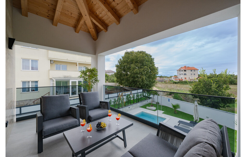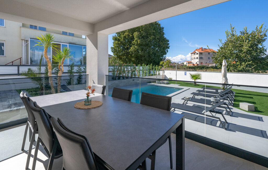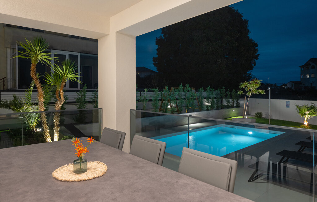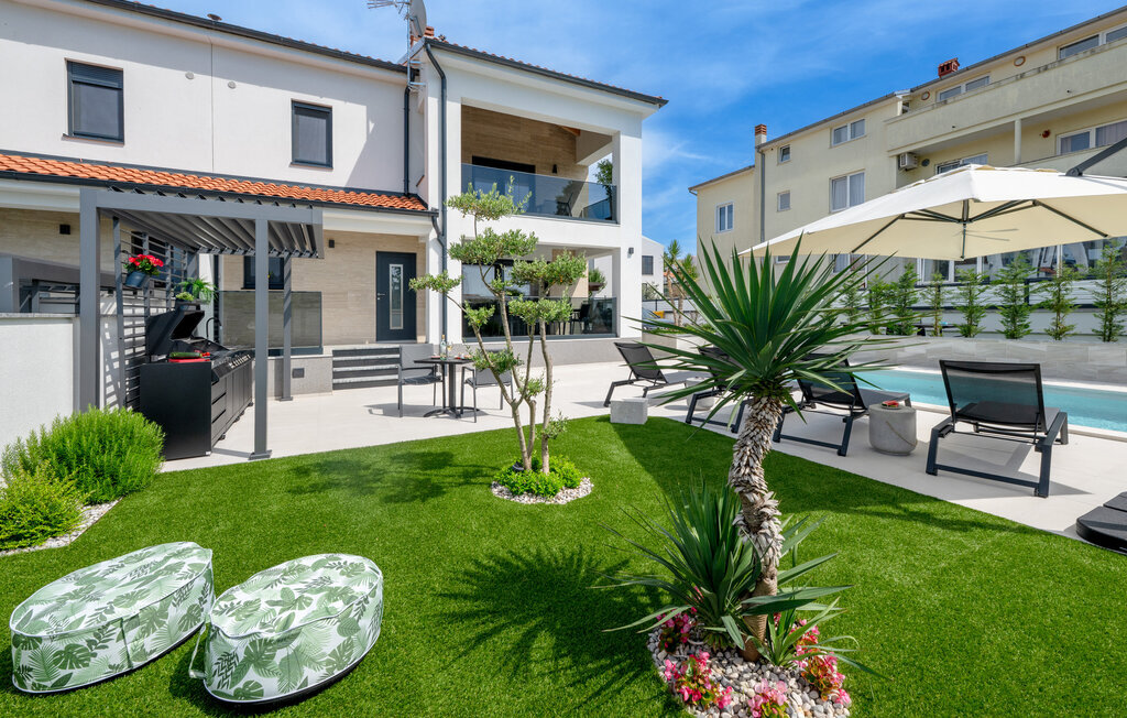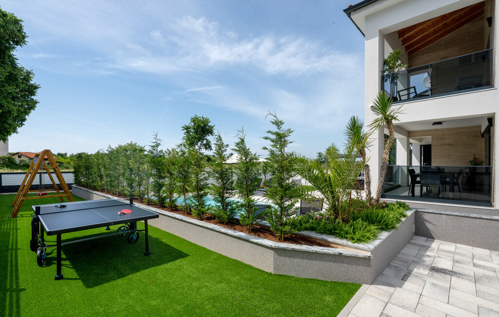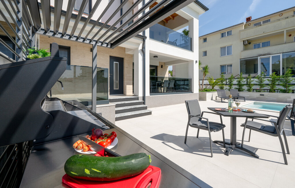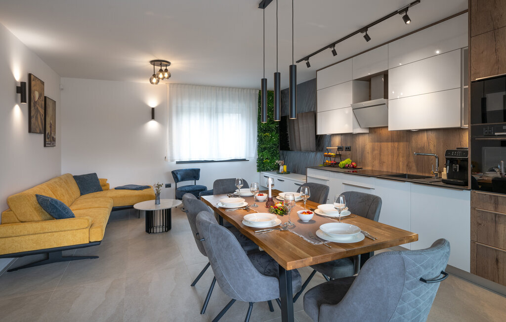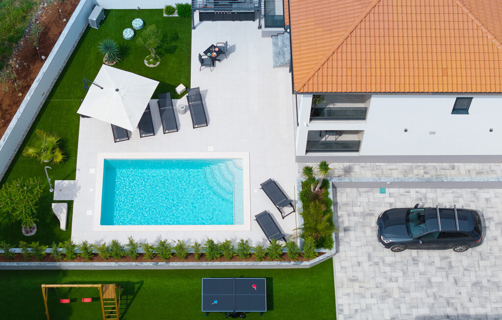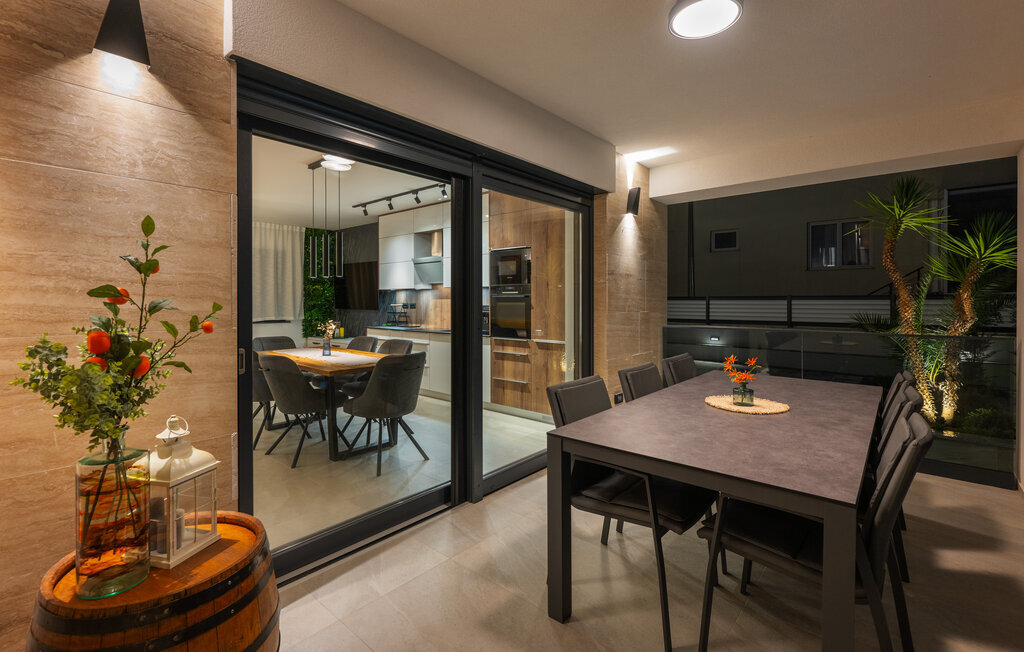 Cette luxueuse maison à Stinjan, sur la côte de l'Istrie, vous offre, à vous et à vos proches, une merveilleuse oasis de détente. Commencez la journée sur la terrasse spacieuse, où une table à manger vous invite à prendre des petits déjeuners agréables en plein air. Profitez de la vue sur l'espace piscine accueillant et les environs paisibles tout en respirant l'air frais du matin. À l'intérieur, un concept de vie élégant et ouvert vous attend. Installez-vous dans le confortable canapé et passez des soirées relaxantes en regardant vos films préférés. La salle à manger élégante crée une atmosphère agréable pour les repas en commun, et vous pouvez laisser libre cours à vos talents culinaires dans la cuisine moderne et bien équipée.