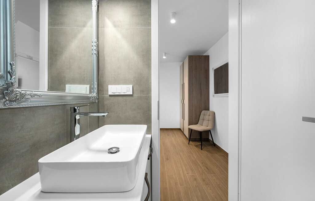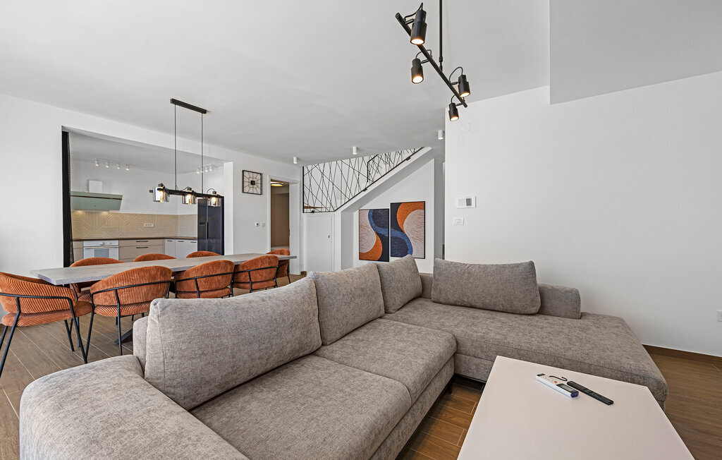 Cette élégante maison de vacances vous gâte avec sa situation privilégiée sur la côte, ses nombreuses commodités confortables et son équipement de qualité. Cuisinez des délices méditerranéens dans la cuisine spacieuse et élégante. Réjouissez-vous de cuisiner en toute convivialité dans la cuisine lumineuse et moderne et célébrez vos repas autour de la table à manger accueillante. Installez-vous confortablement sur le canapé, profitez de l'ambiance élégante avec un verre de vin ou regardez un film passionnant en streaming.