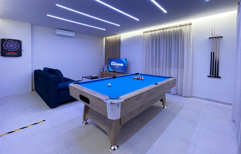 Location de vacances avec activités : Cette location de vacances comprend un ou plusieurs équipements de loisir (ping-pong, billard, baby-foot...)