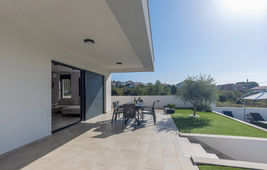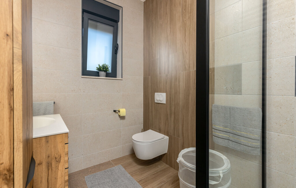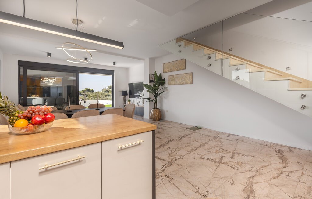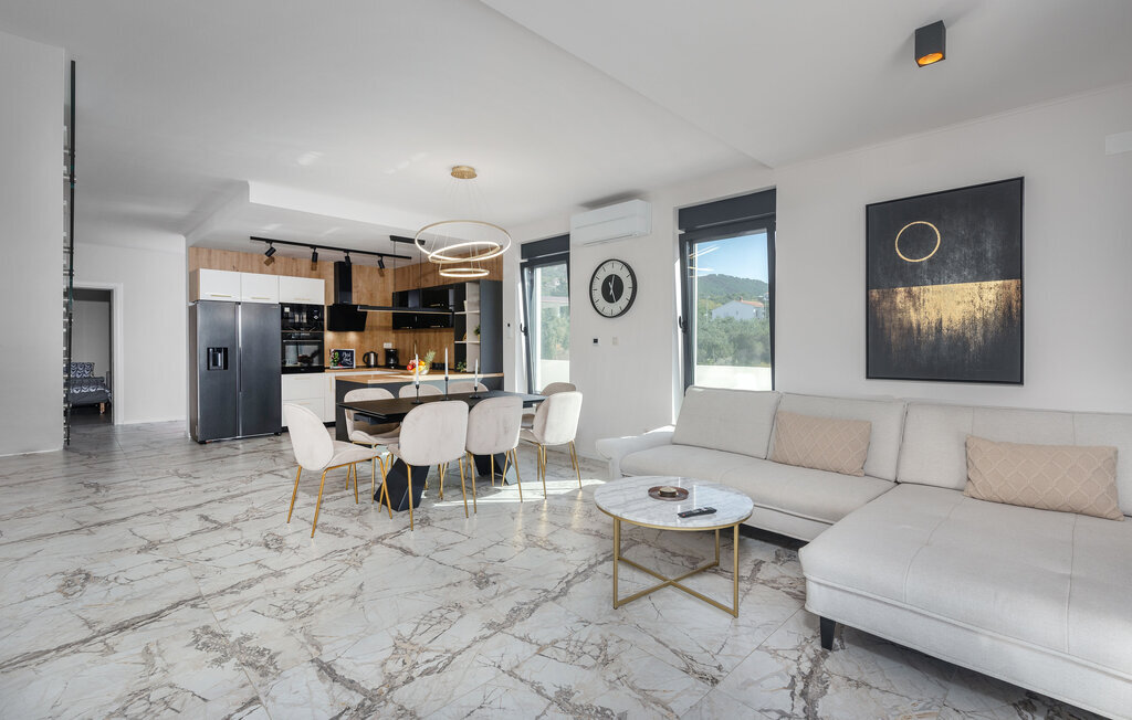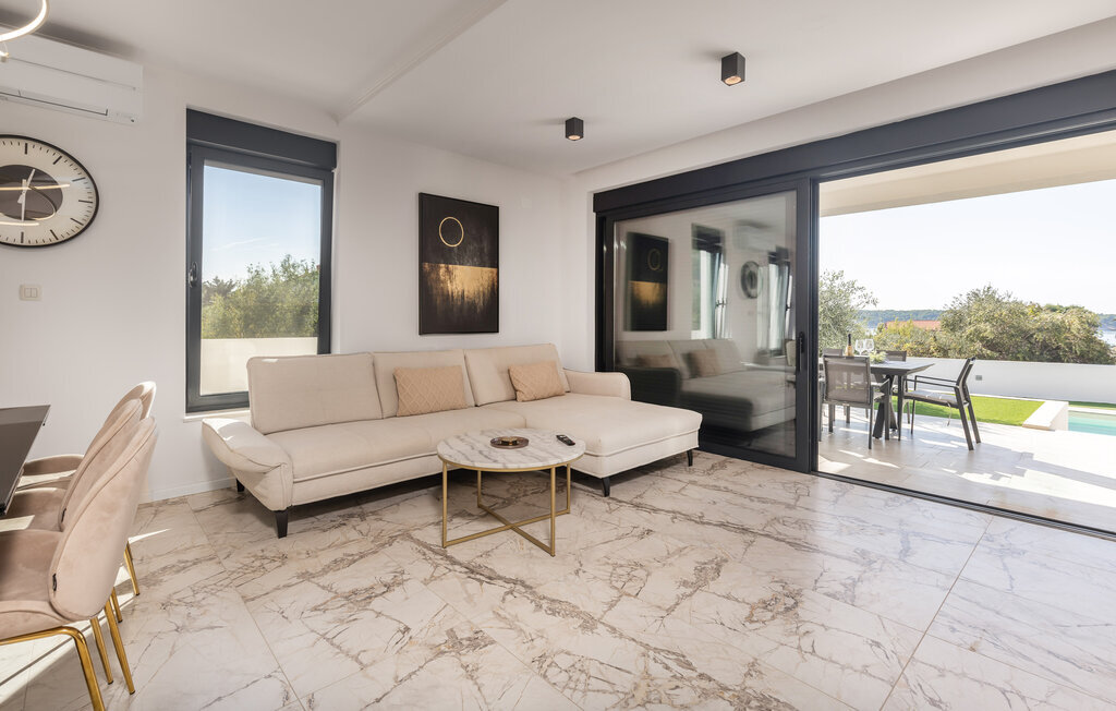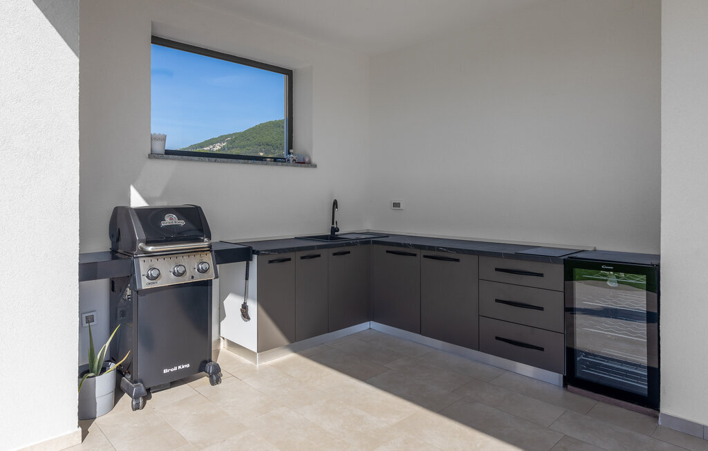 Cette maison de vacances moderne à Banjol vous offre, à vous et à votre famille ou vos amis, une ambiance élégante sur deux étages et une vue magnifique sur la mer. Les chambres à coucher de haute qualité, aménagées individuellement, assurent confort et détente, tandis que le salon ouvert offre un espace pour cuisiner, manger et se détendre ensemble. La cuisine d'été en plein air vous invite à passer des soirées conviviales, et la piscine extérieure chauffée vous permet de vous rafraîchir et de vous détendre. Entouré d'un jardin clôturé et bien entretenu avec des meubles de jardin de qualité, vous pourrez profiter du soleil.