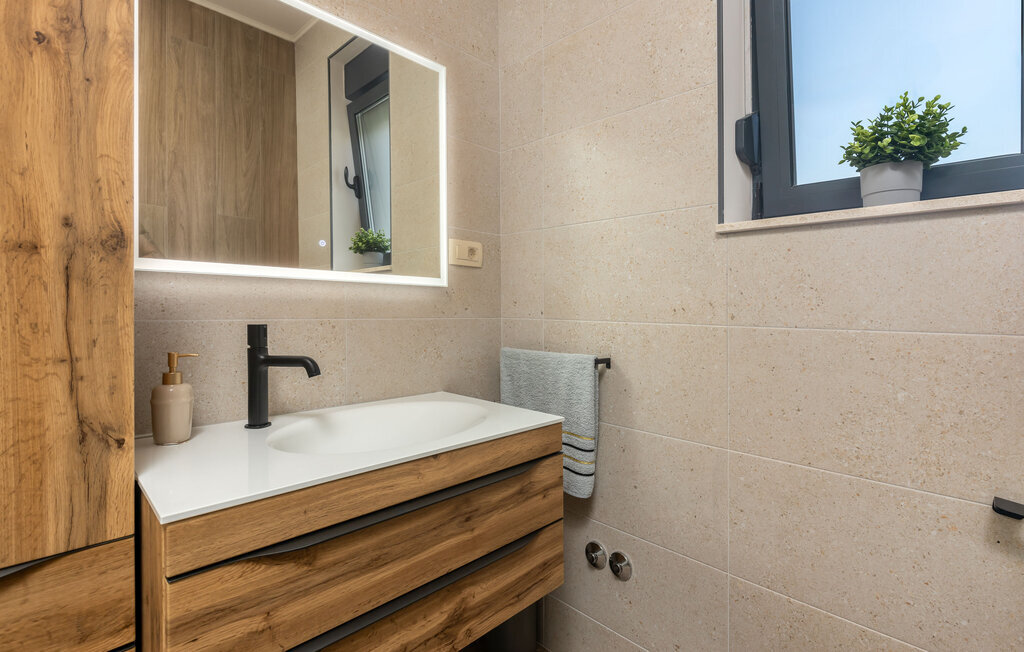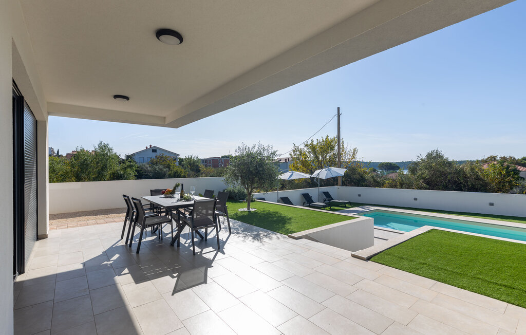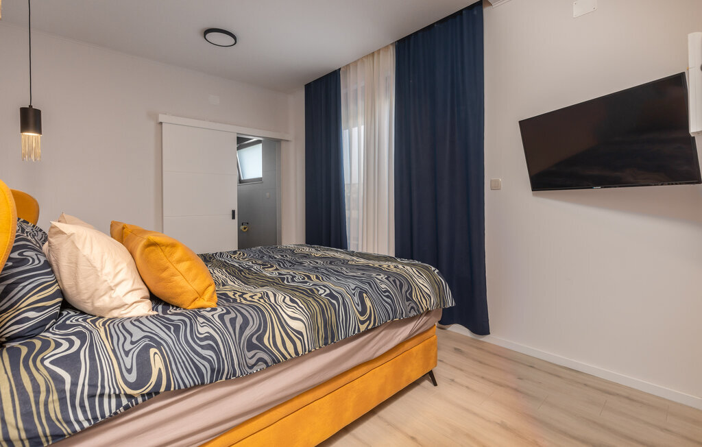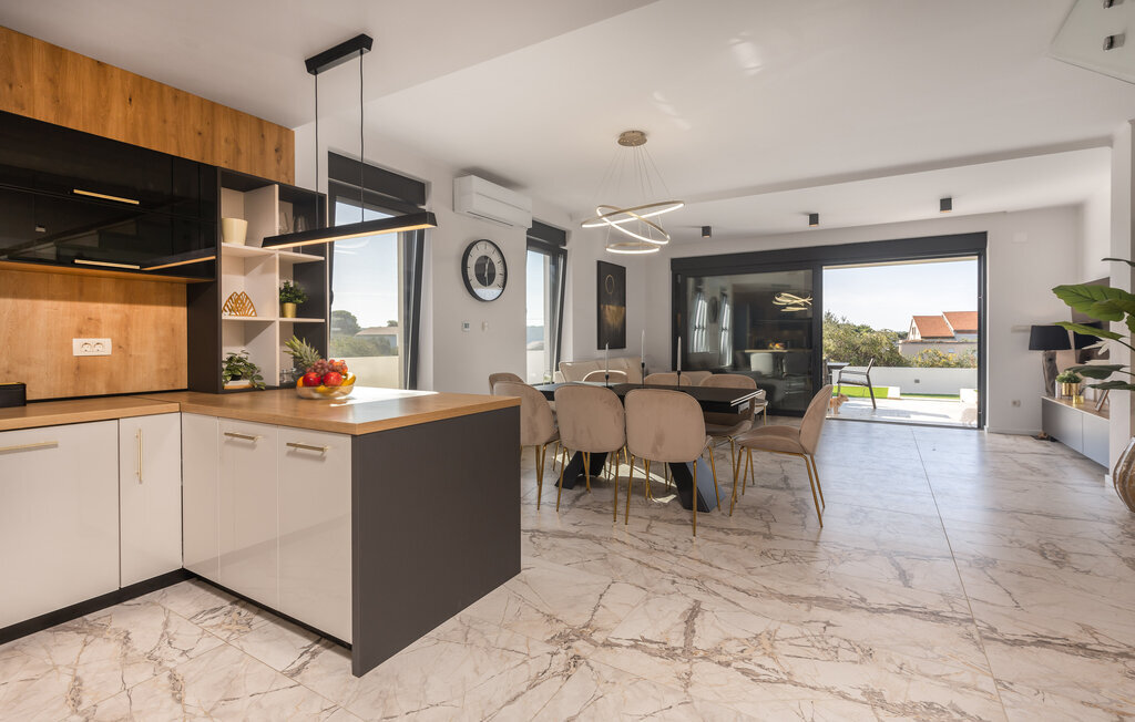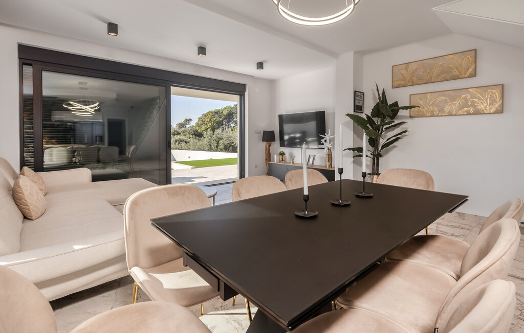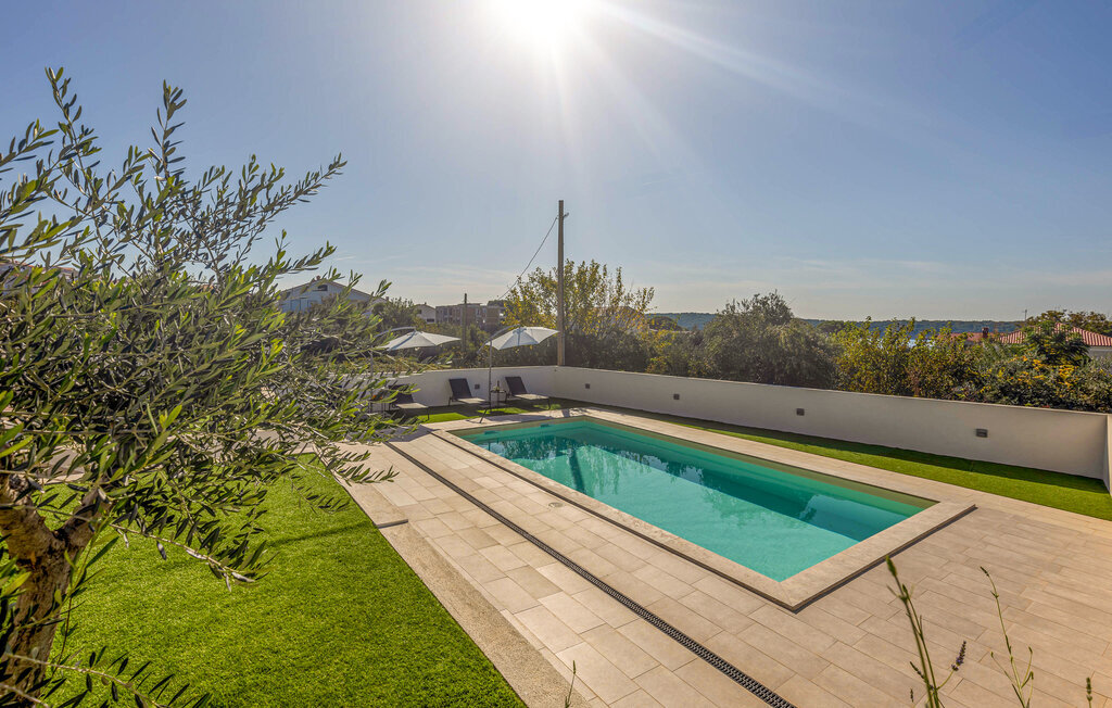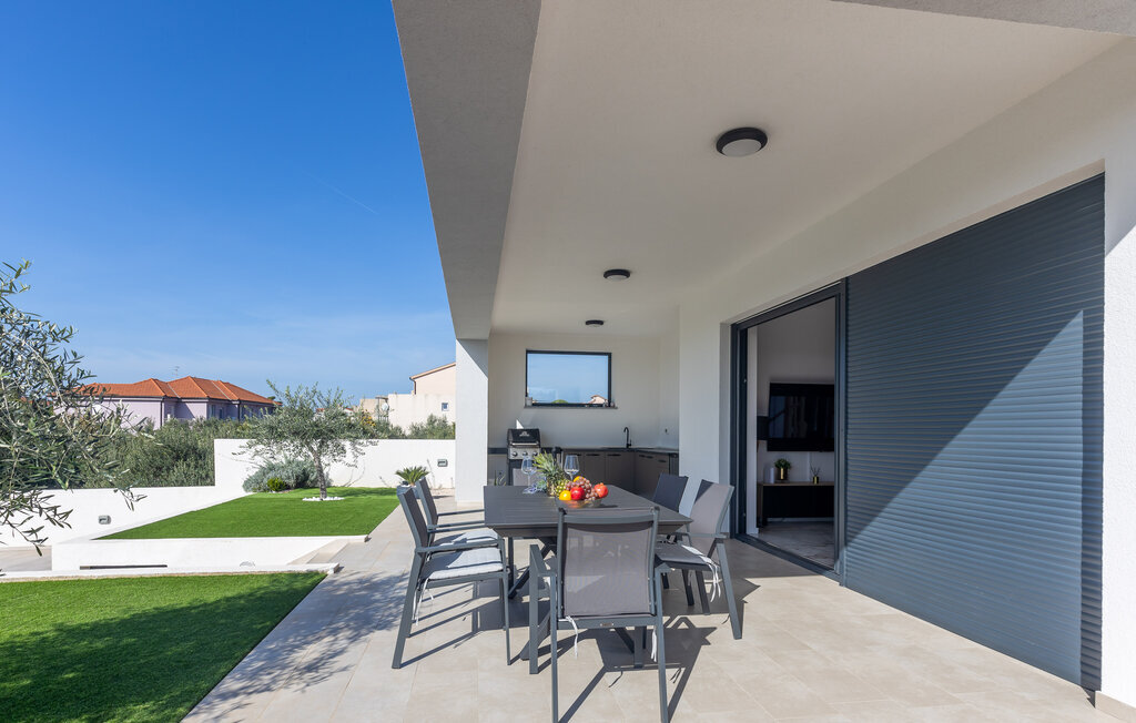 Cette maison de vacances moderne à Banjol vous offre, à vous et à votre famille ou vos amis, une ambiance élégante sur deux étages et une vue magnifique sur la mer. Les chambres à coucher de haute qualité, aménagées individuellement, assurent confort et détente, tandis que le salon ouvert offre un espace pour cuisiner, manger et se détendre ensemble. La cuisine d'été en plein air vous invite à passer des soirées conviviales, et la piscine extérieure chauffée vous permet de vous rafraîchir et de vous détendre. Entouré d'un jardin clôturé et bien entretenu avec des meubles de jardin de qualité, vous pourrez profiter du soleil.