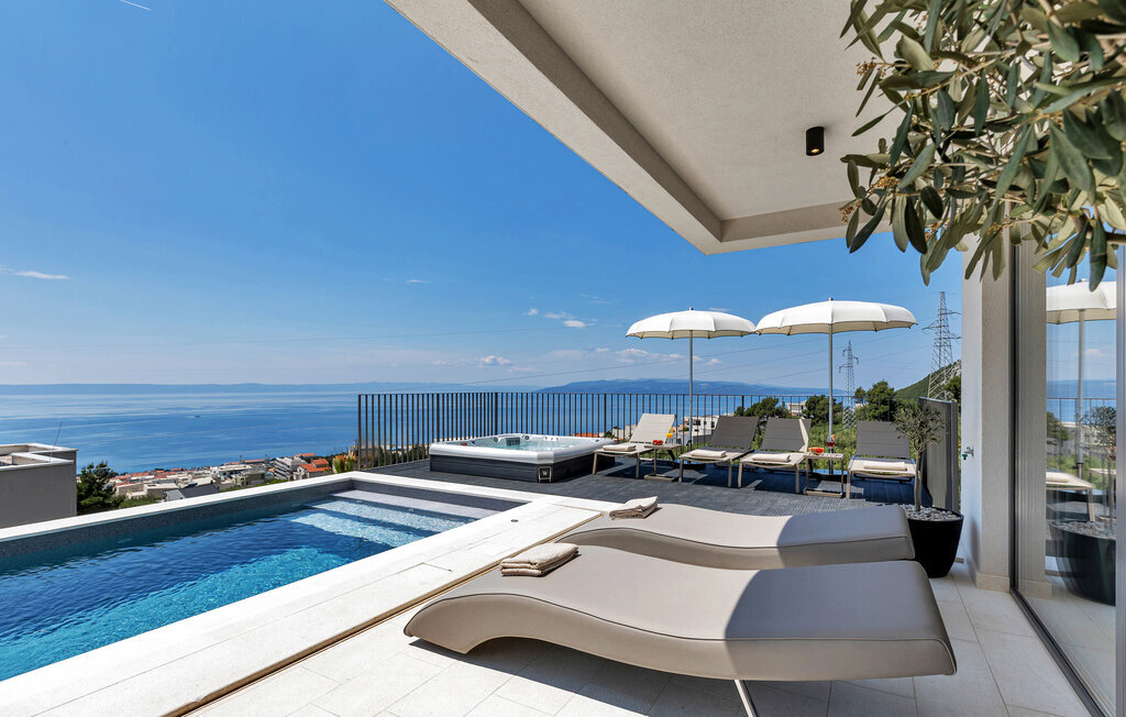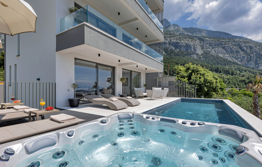 Bien-être à l'extérieur : Location de vacances disposant de chaises-longues et d'un ou plusieurs équipements tels que piscine extérieure, jacuzzi extérieur, lit à baldaquin de jardin etc...